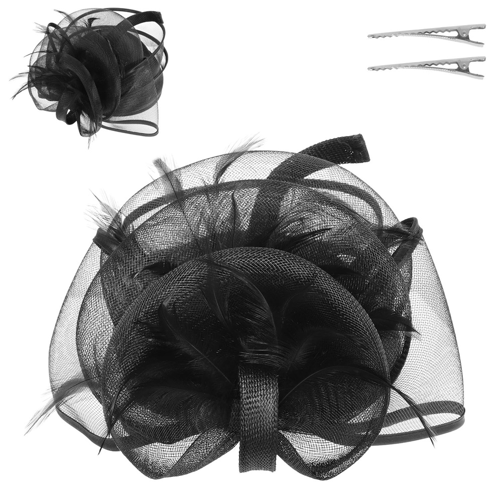 SWIRLING LOOPED RIBBION FEATHERED FLAX MESH FASCINATOR WITH DUAL CLIPS