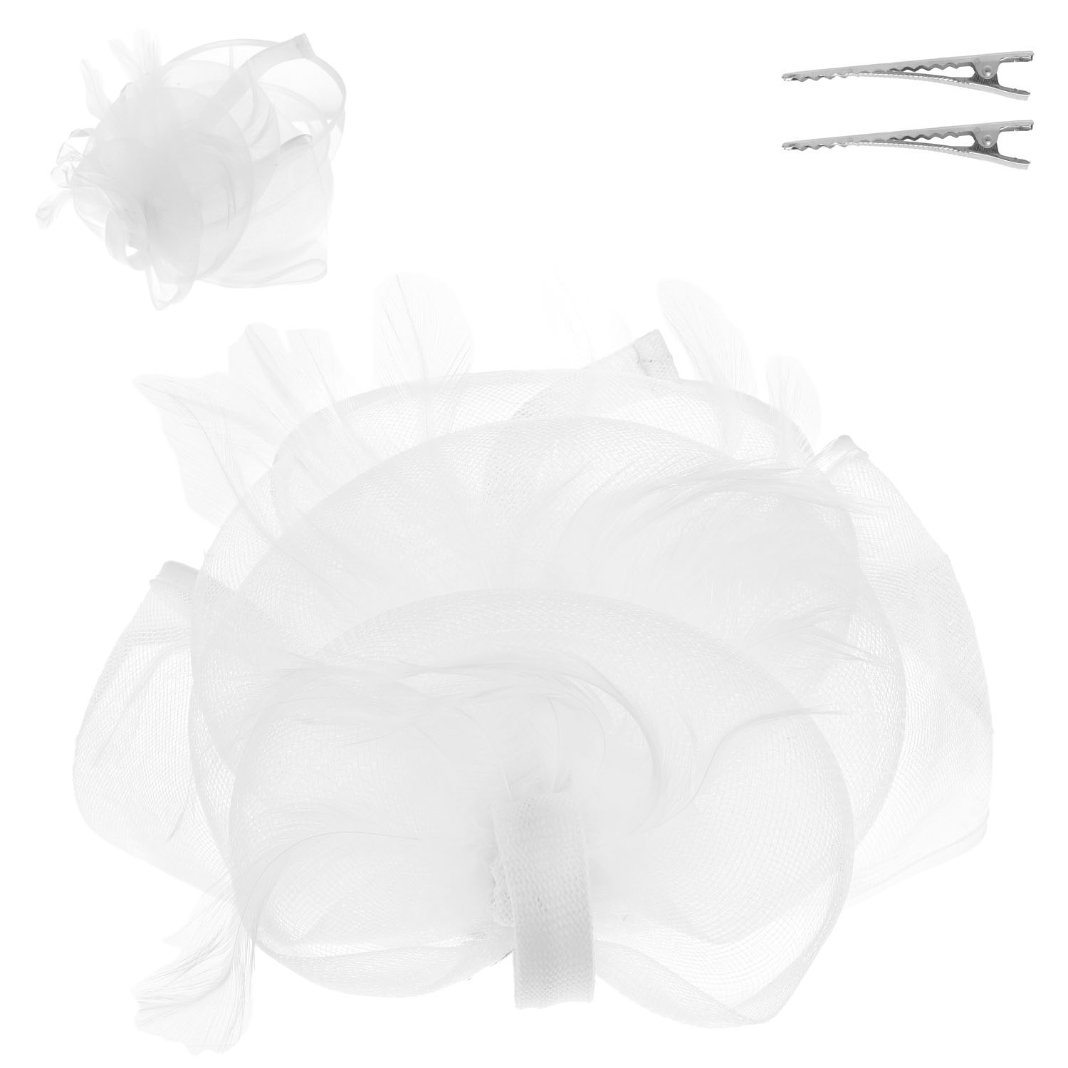 SWIRLING LOOPED RIBBION FEATHERED FLAX MESH FASCINATOR WITH DUAL CLIPS