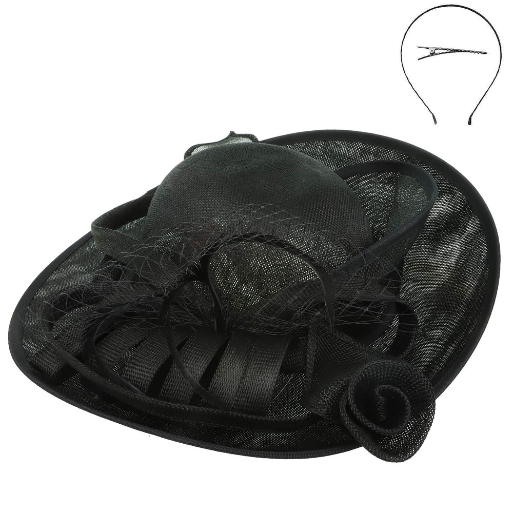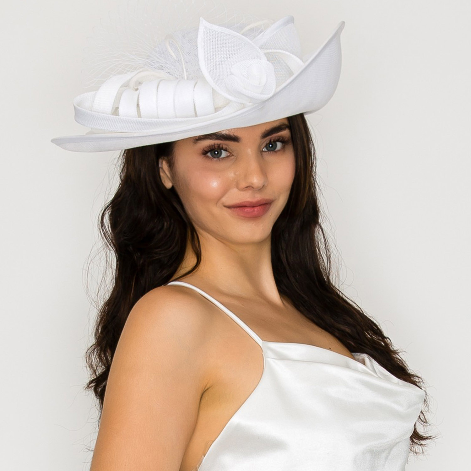 FLAX FASCINATOR WITH LOOP BOW AND ROSETTE BUD ACCENT WITH CLIP AND HEADBAND ATTACHMENT
