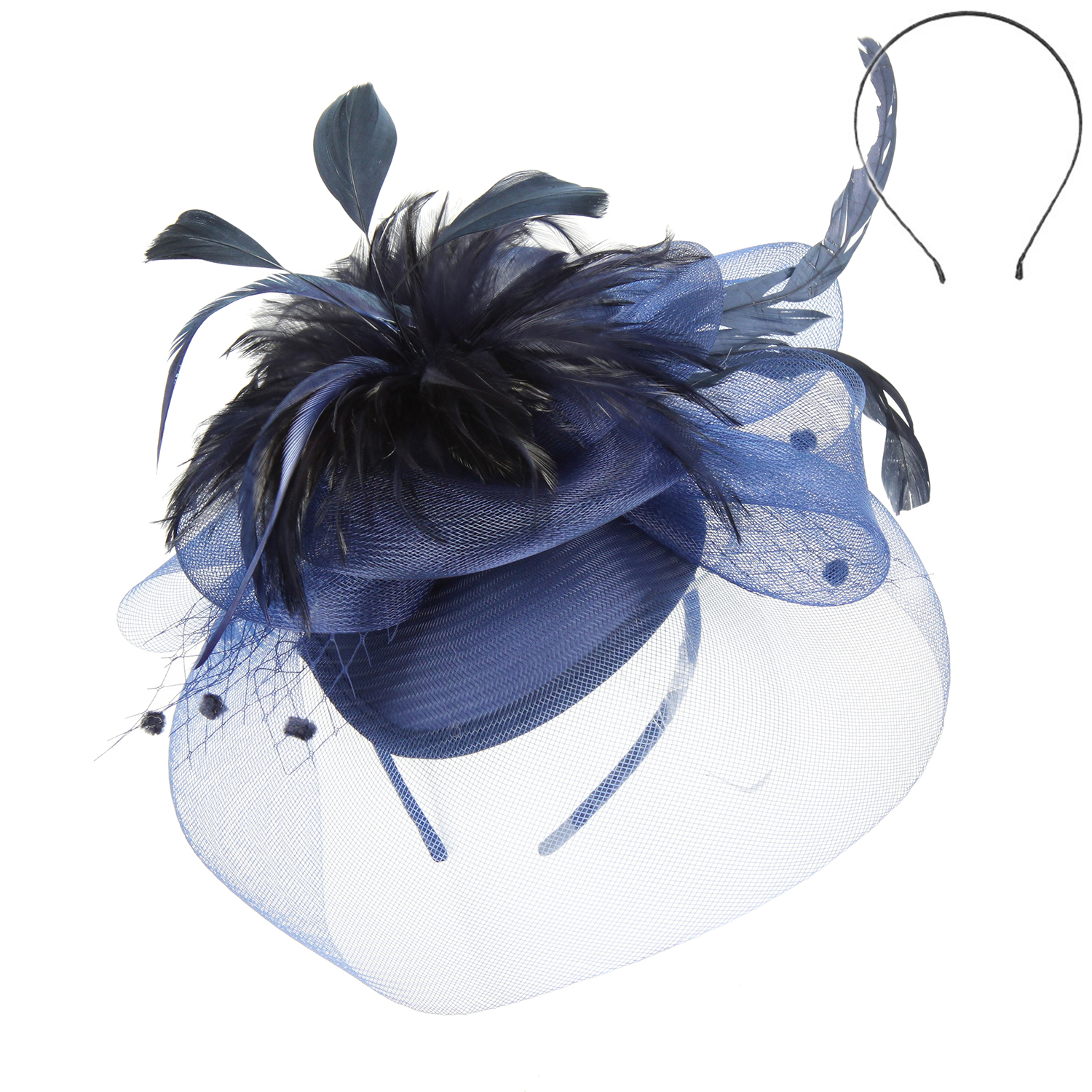 Mesh Flower and Veil with Feathers and Dotted Netting Headband Fascinator