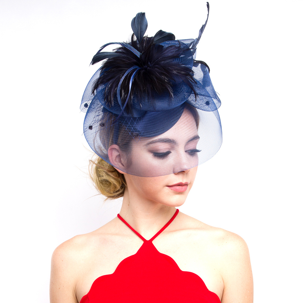 Mesh Flower And Veil With Feathers And Dotted Netting Headband Fascinator