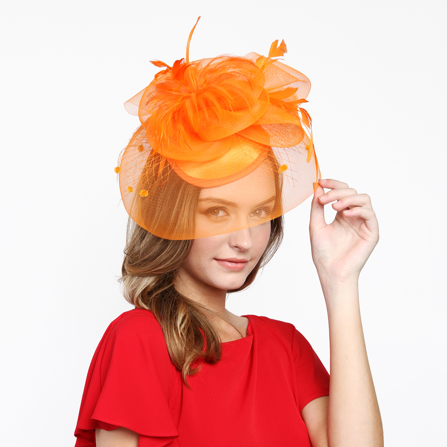 Mesh Flower And Veil With Feathers And Dotted Netting Headband Fascinator