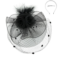 3 FLWR MESH VEIL FEATHER FASCINATOR DETACHABLE HEADBAND INCLUDES HEADBAND AND CLIP