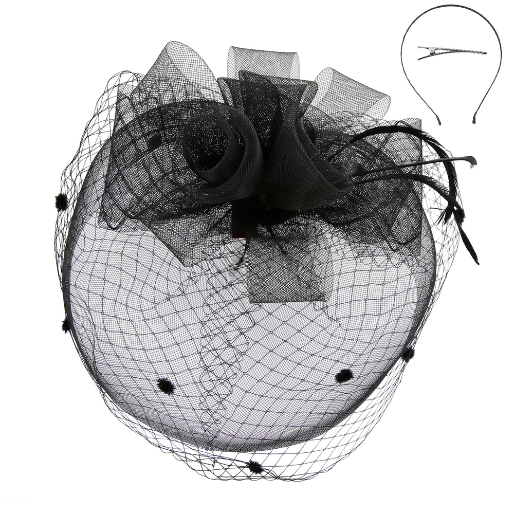 DOUBLE VEIL MESH FASCINATOR DETACHABLE HEADBAND INCLUDES HEADBAND AND CLIP