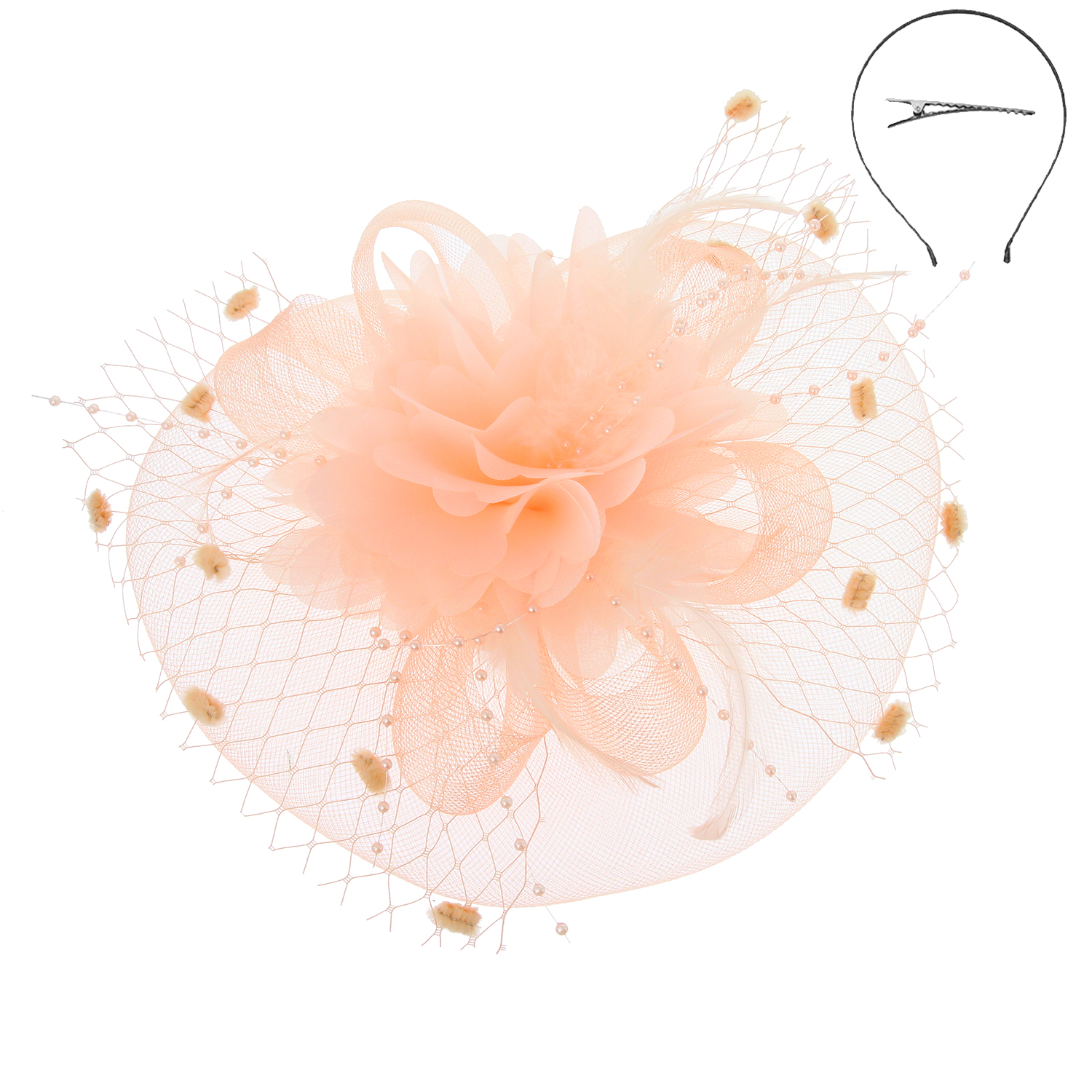 SATIN FLOWER MESH VEIL FASCINATOR DETACHABLE HEADBAND INCLUDES HEADBAND AND CLIP