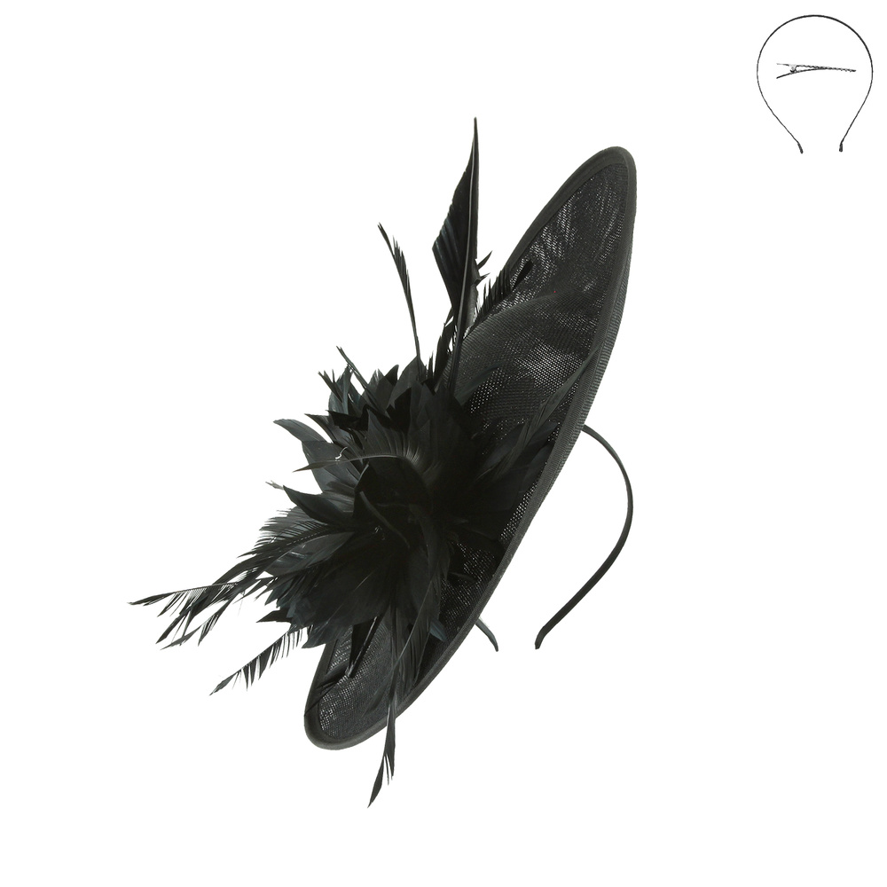 LRG FLORAL FEATHERED SINAMAY FASCINATOR WITH DETACHABLE CLIP AND HEADBAND