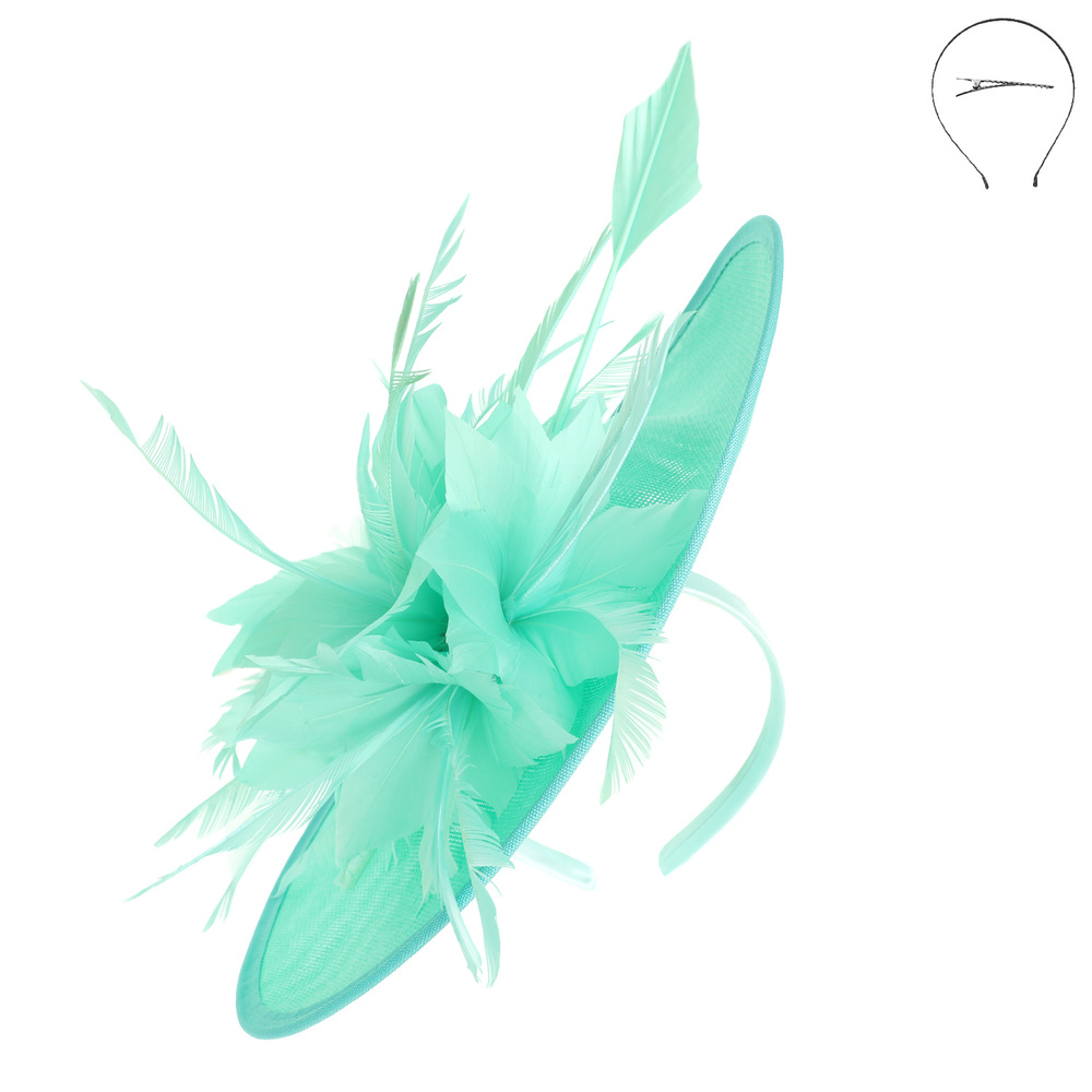 LRG FLORAL FEATHERED SINAMAY FASCINATOR WITH DETACHABLE CLIP AND HEADBAND