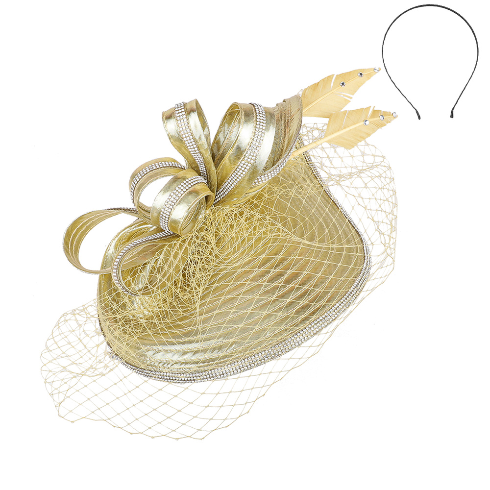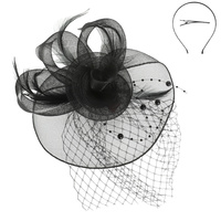 LOOPED POINTED FEATHER VEIL BRAID HEADBAND FASCINATOR