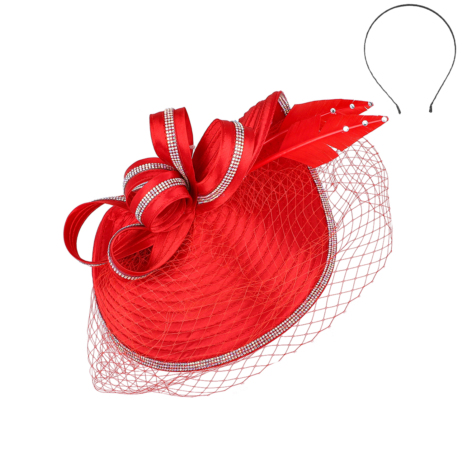 LOOPED POINTED FEATHER VEIL BRAID HEADBAND FASCINATOR