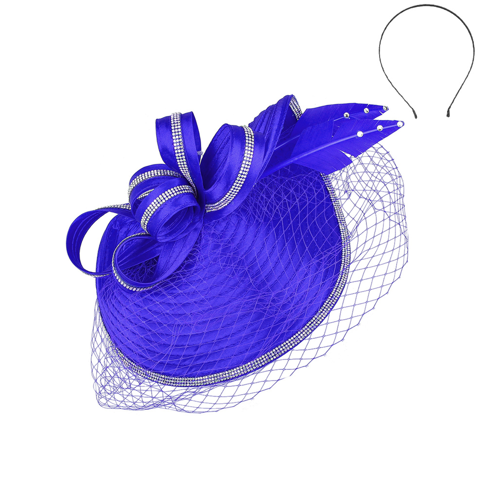 LOOPED POINTED FEATHER VEIL BRAID HEADBAND FASCINATOR