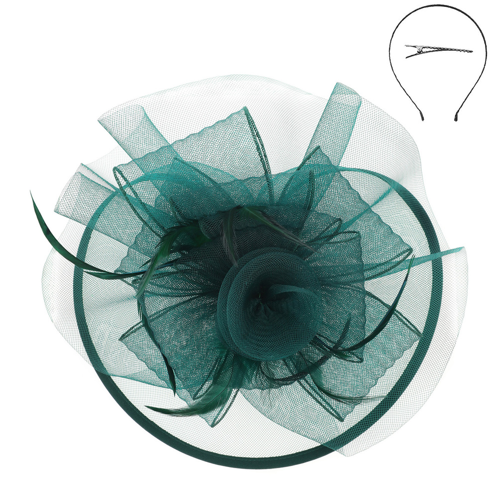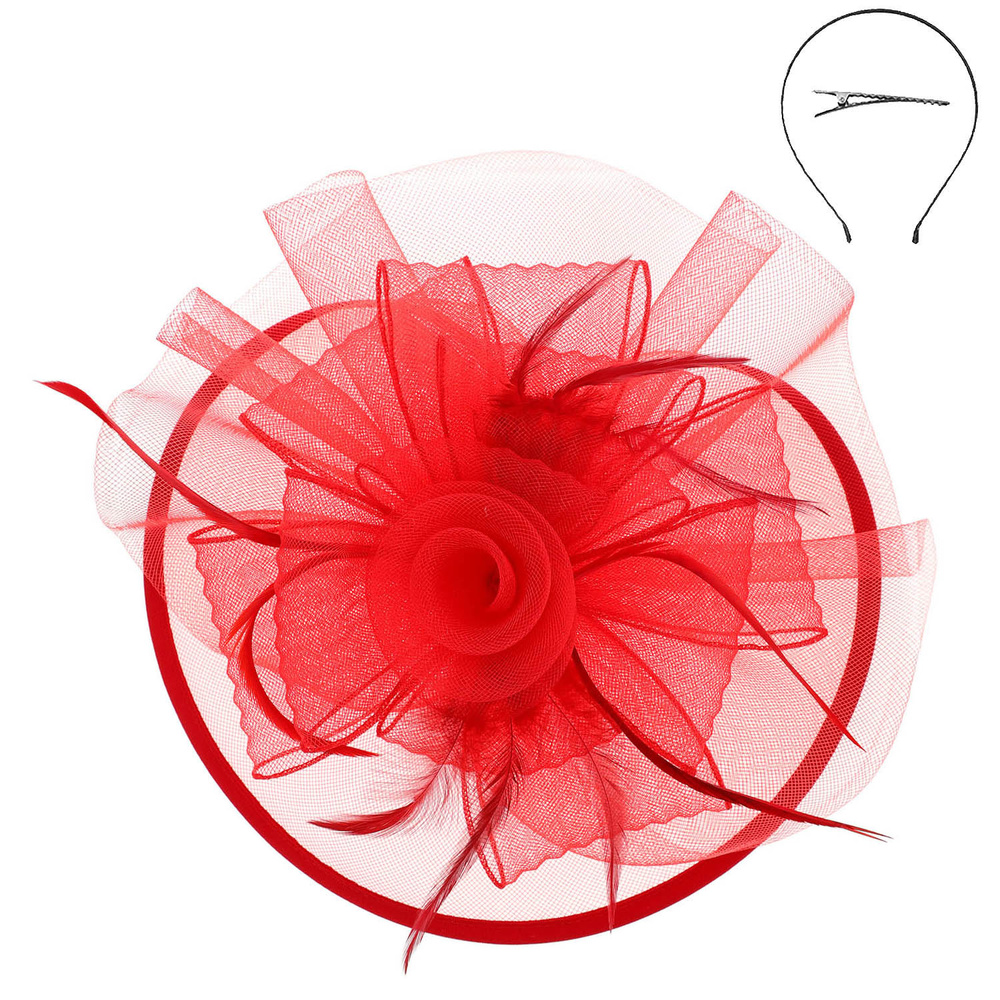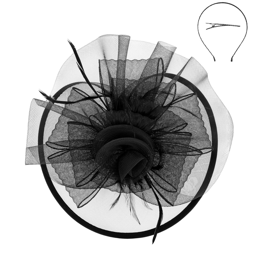 WOMEN'S KENTUCKY DERBY TILT MESH FLOWER FEATHERS FASCINATOR WITH DUAL FUNCTION AS CLIP AND HEADBAND