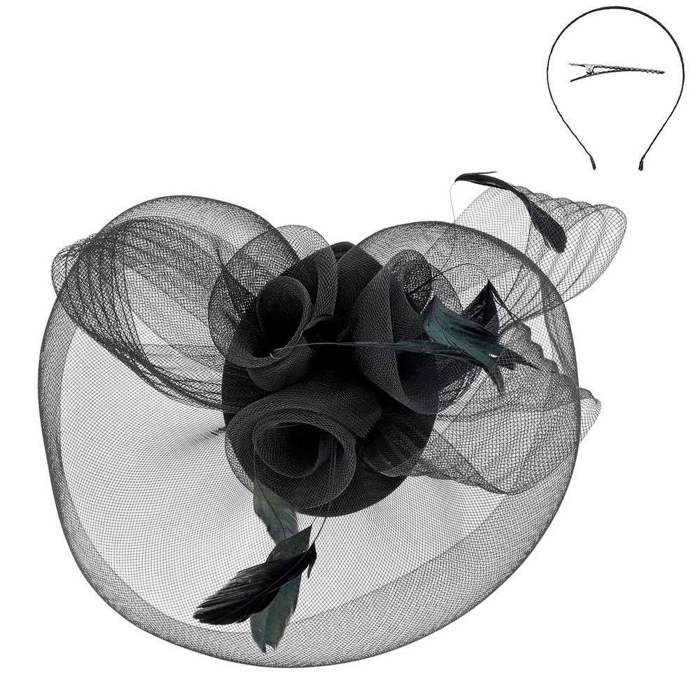 WOMEN'S KENTUCKY DERBY TILT MESH FLOWER FEATHERS FASCINATOR WITH DUAL FUNCTION AS CLIP AND HEADBAND
