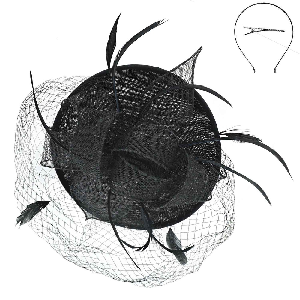 Feather Ribbon Floral Mesh Netting Veil Fascinator With Headband And Clip