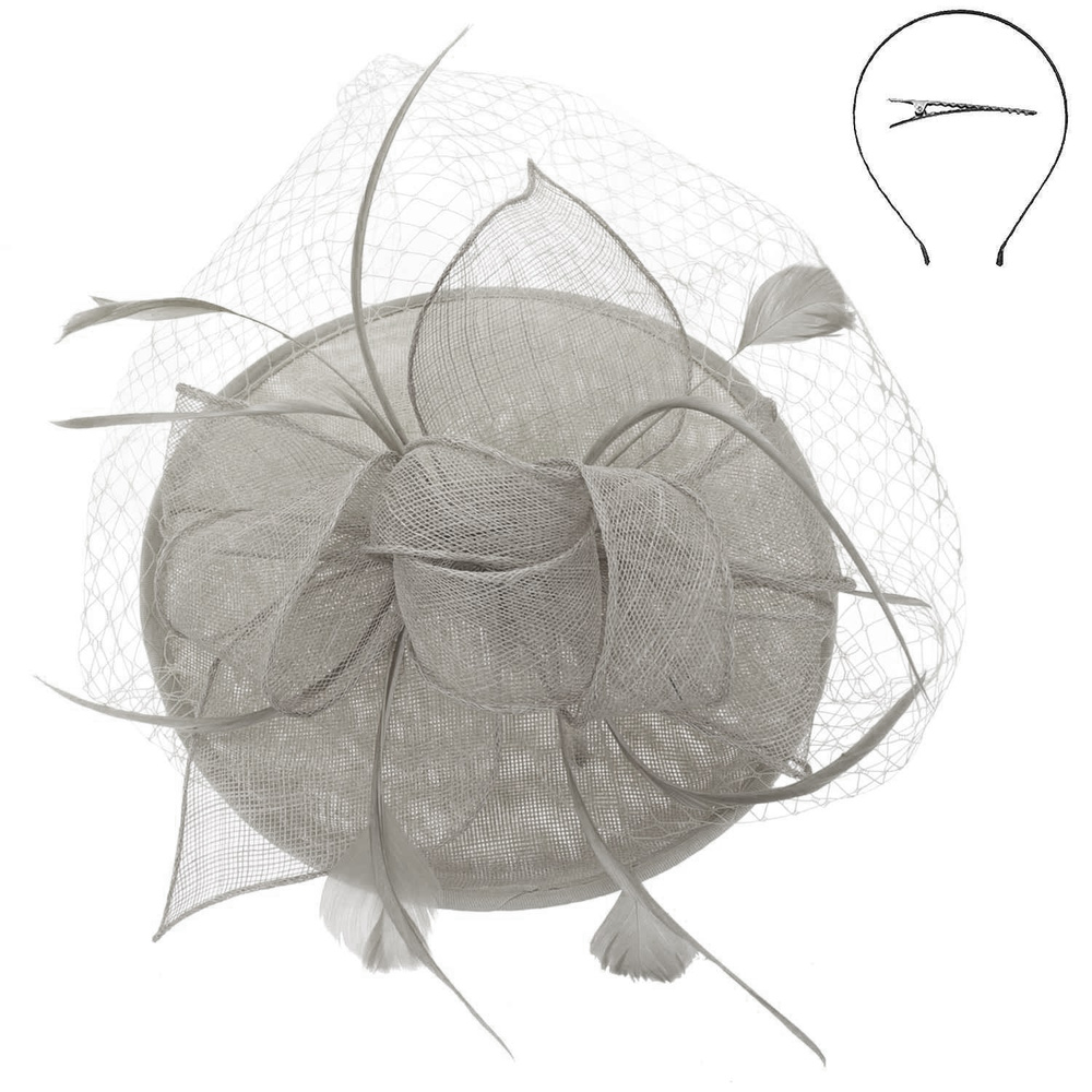 FEATHER RIBBON FLORAL MESH NETTING VEIL FASCINATOR WITH HEADBAND AND CLIP