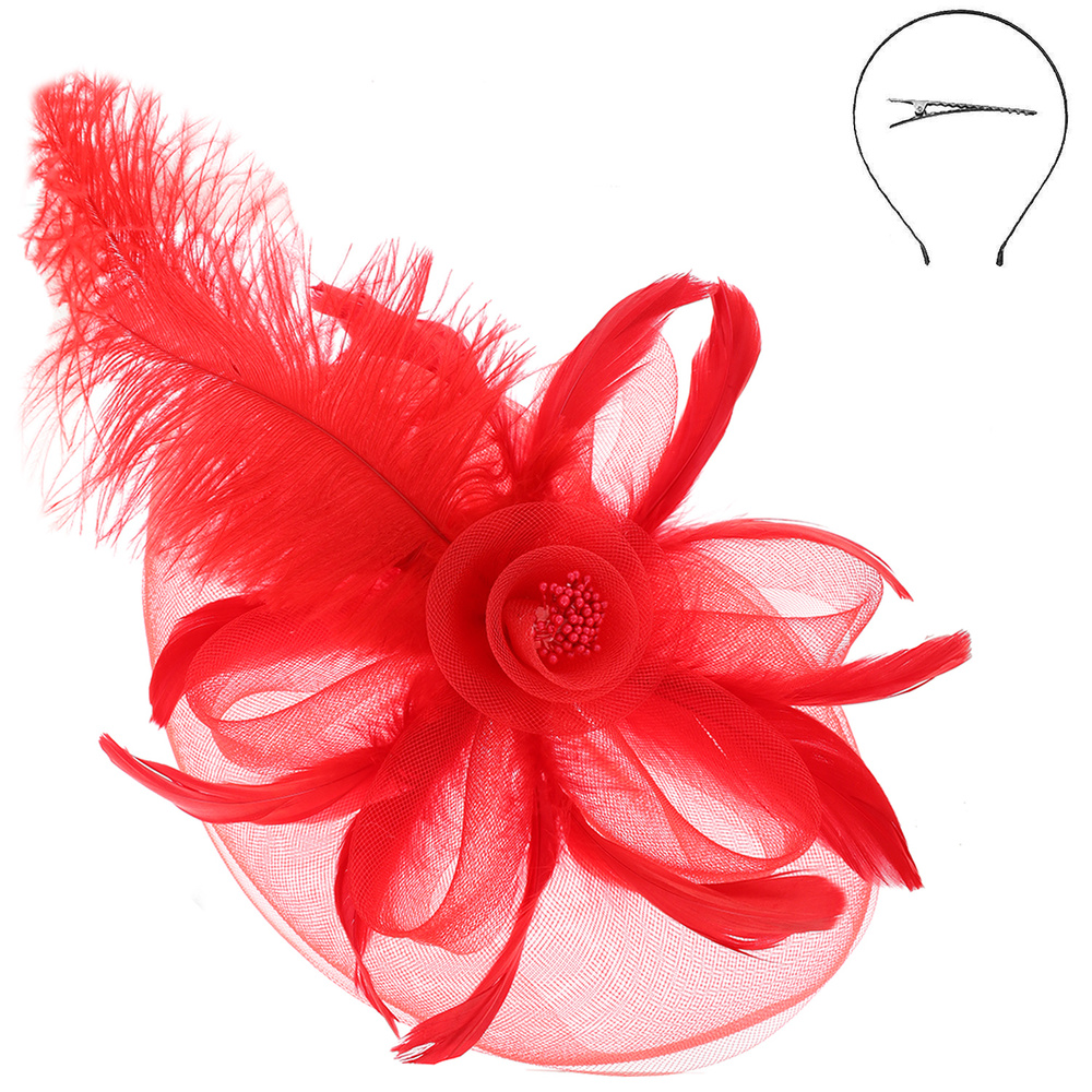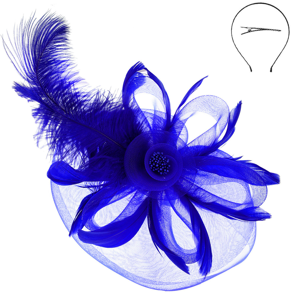 Peacock Feather Rose Fascinator With Headband And Clip