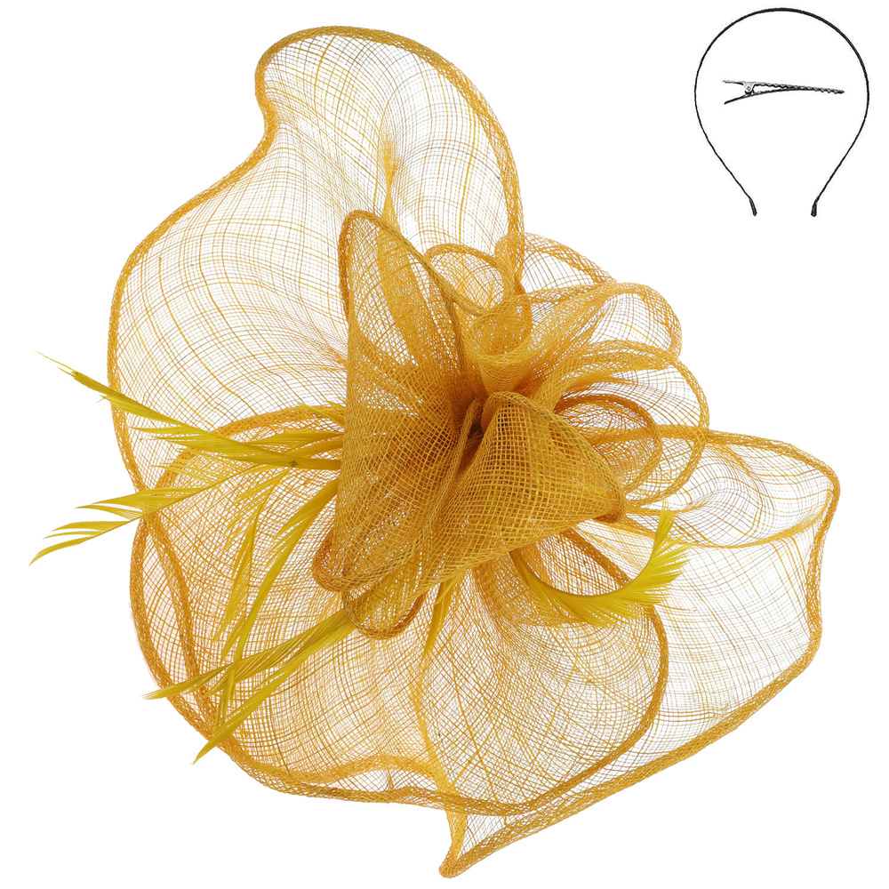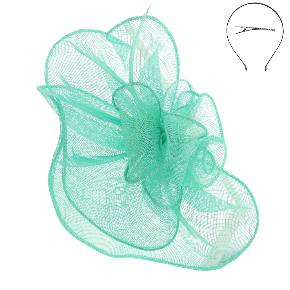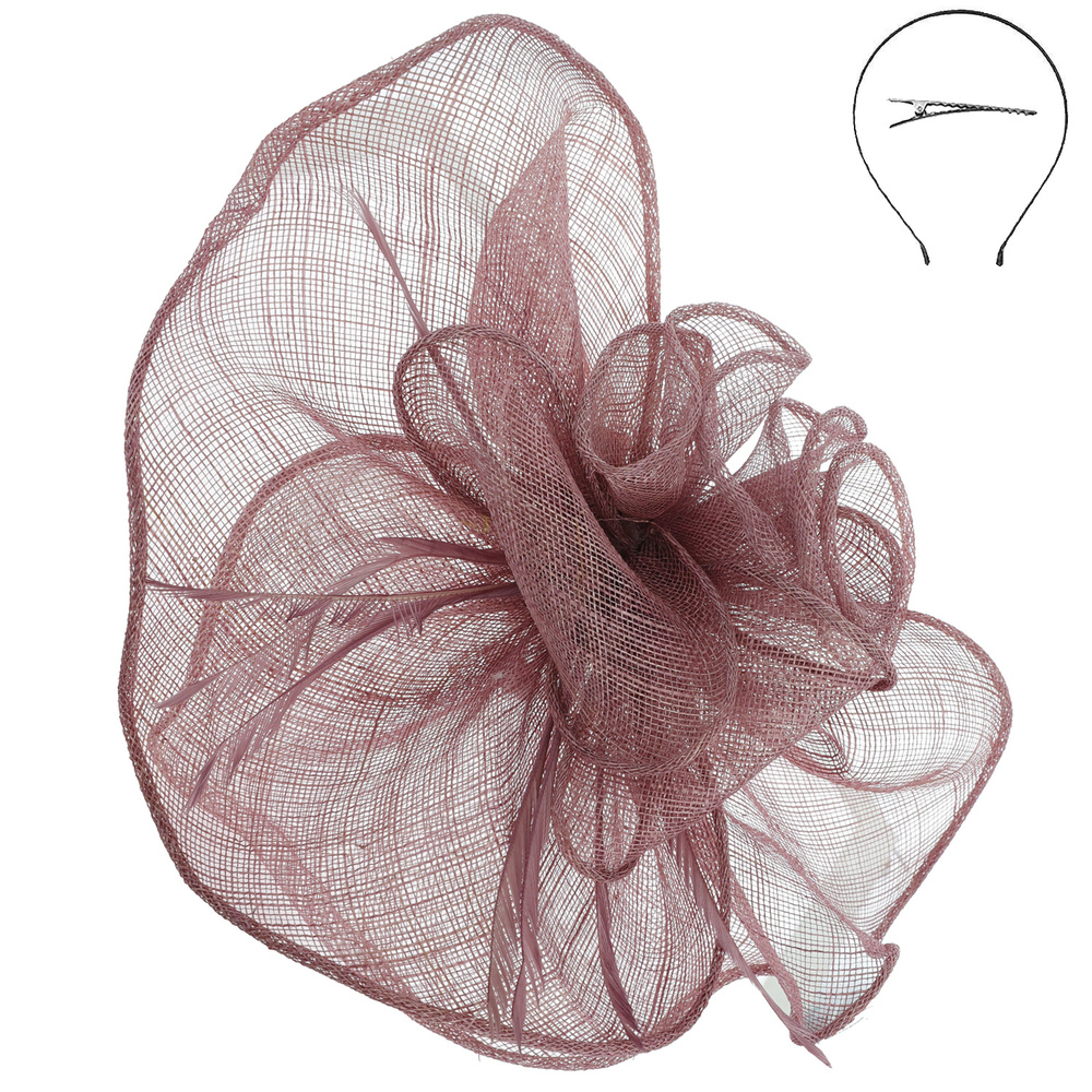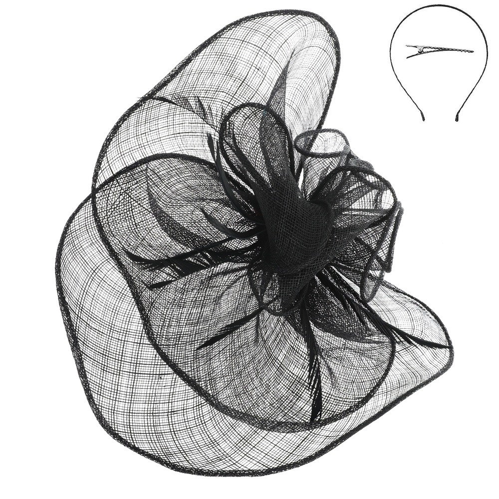 Sinamay Kentucky Derby Southern Style Large Floral Veiled Mesh Fascinator Headpiece 3-piece Decorative Detachable Headband Inclu