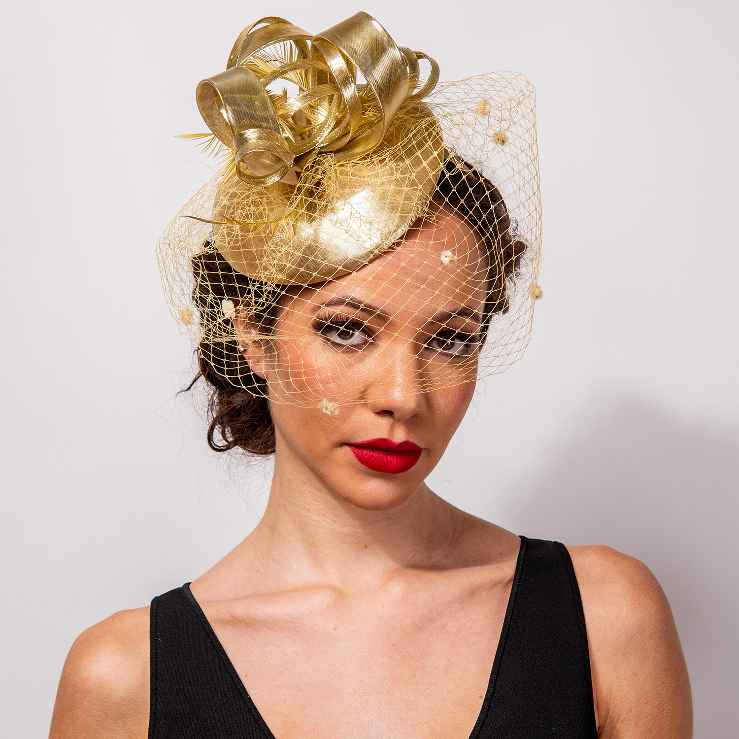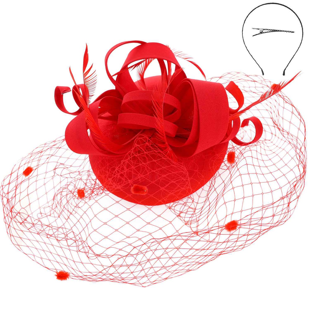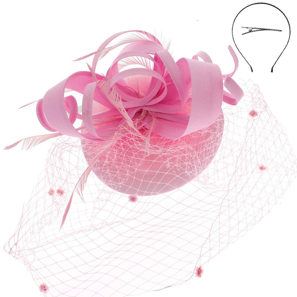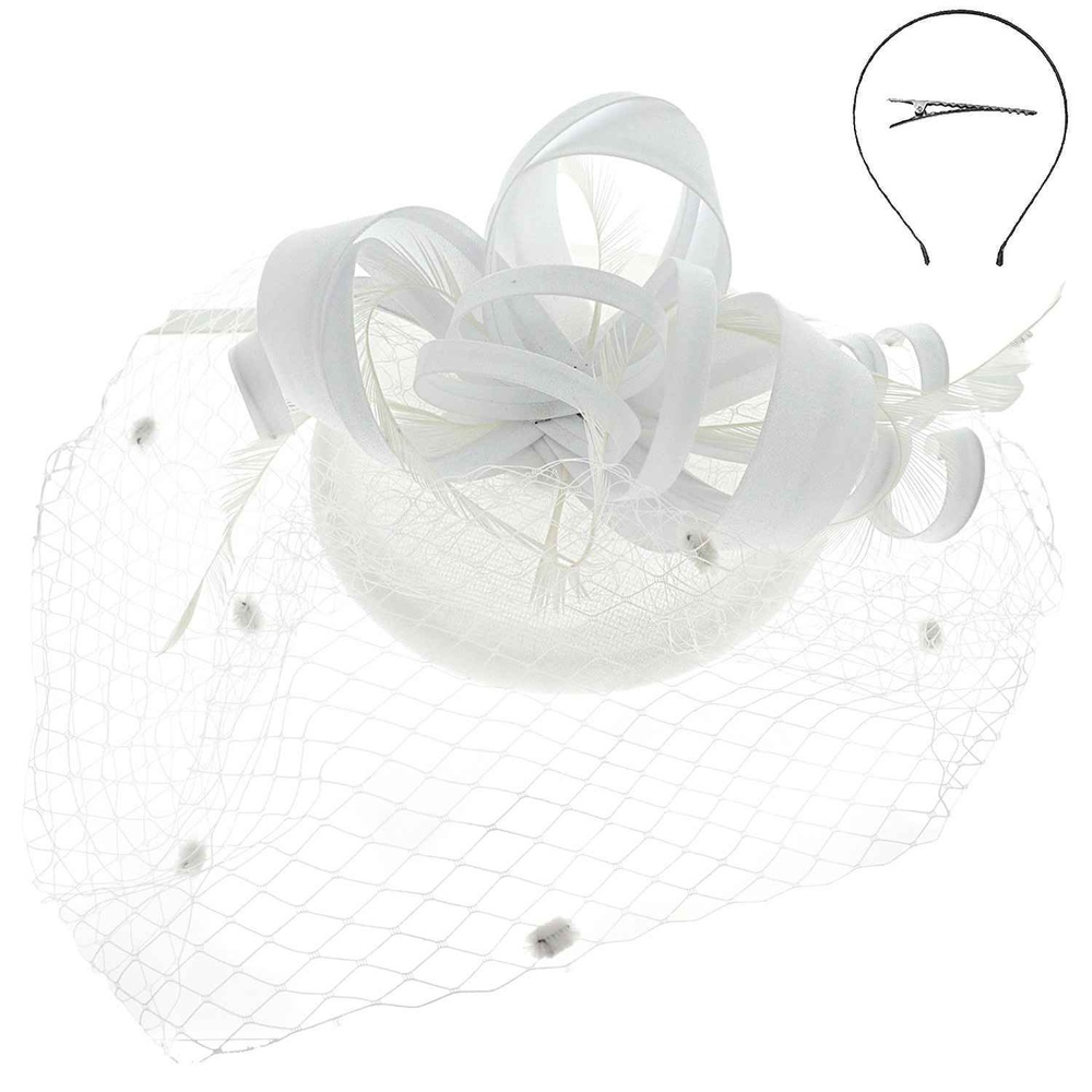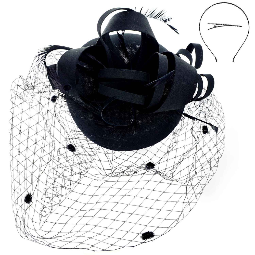 MESH VEILED FASCINATOR WITH HEADBAND AND CLIP