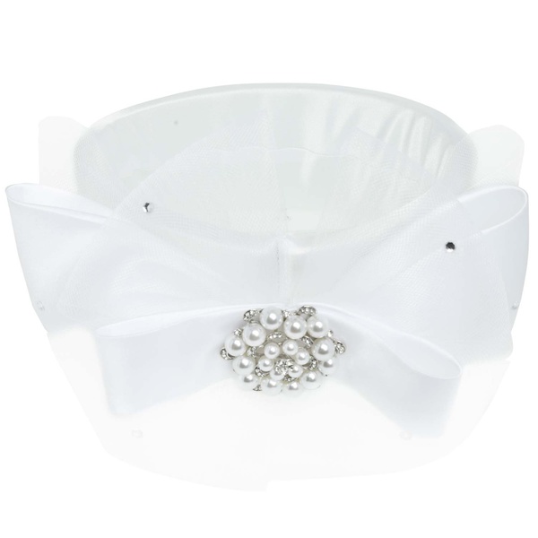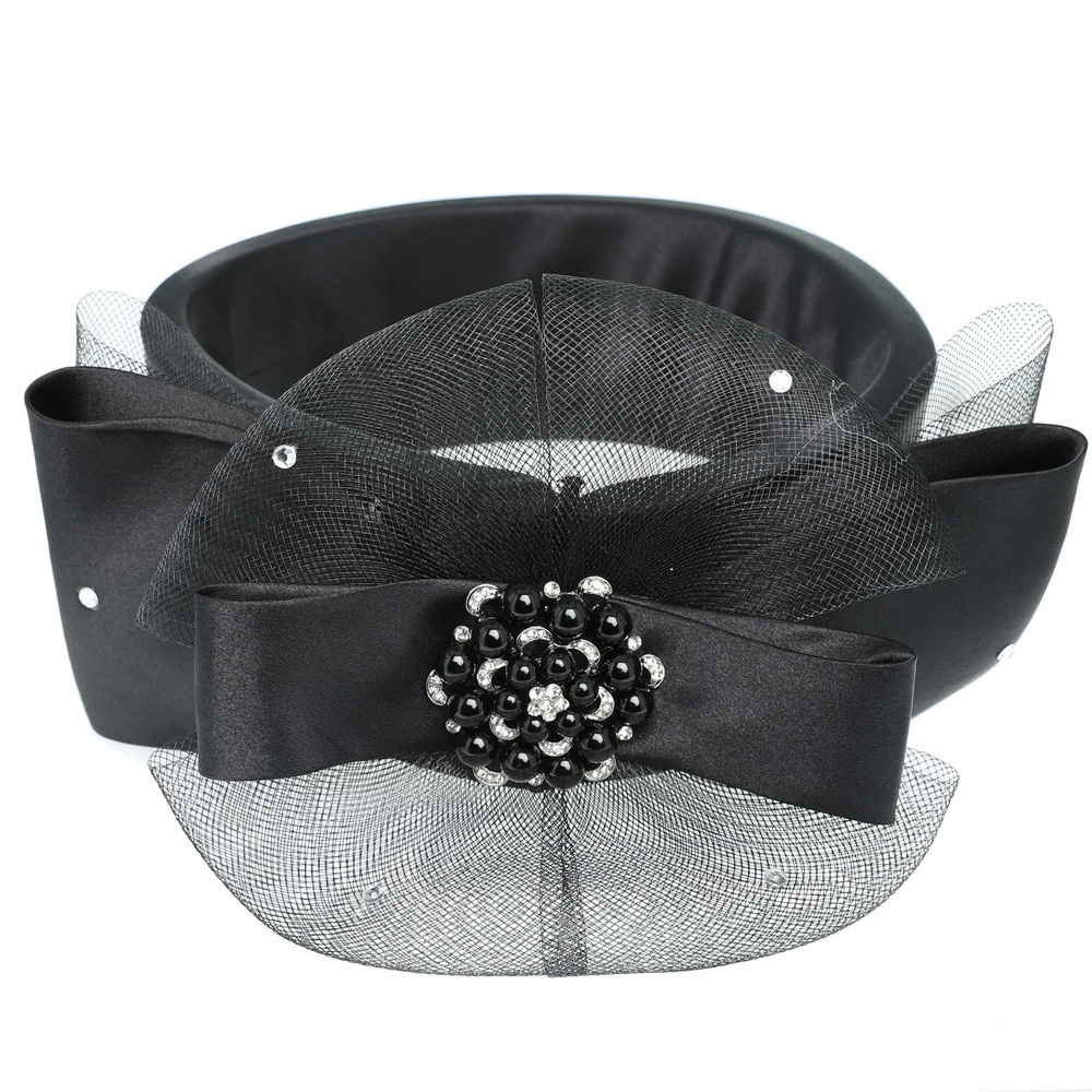 Sunday Best Kentucky Derby Southern Style Large Pearl Bow Mesh Crystal Rhinestone Studded Decorative Satin Headpiece Sponge Head
