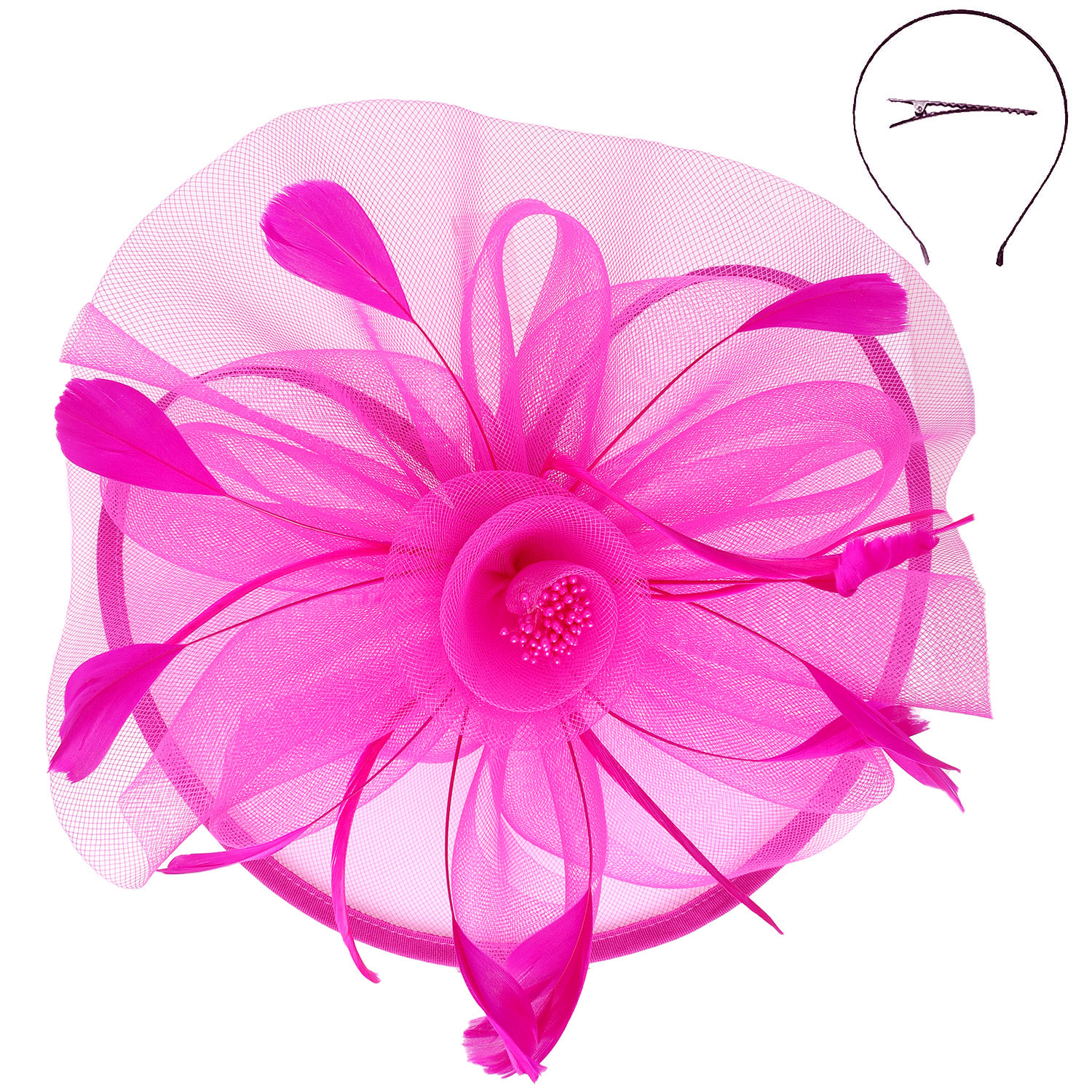 FLORAL ORGANZA MESH RIBBON FEATHERED ACCENT FASCINATOR WITH HEADBAND
