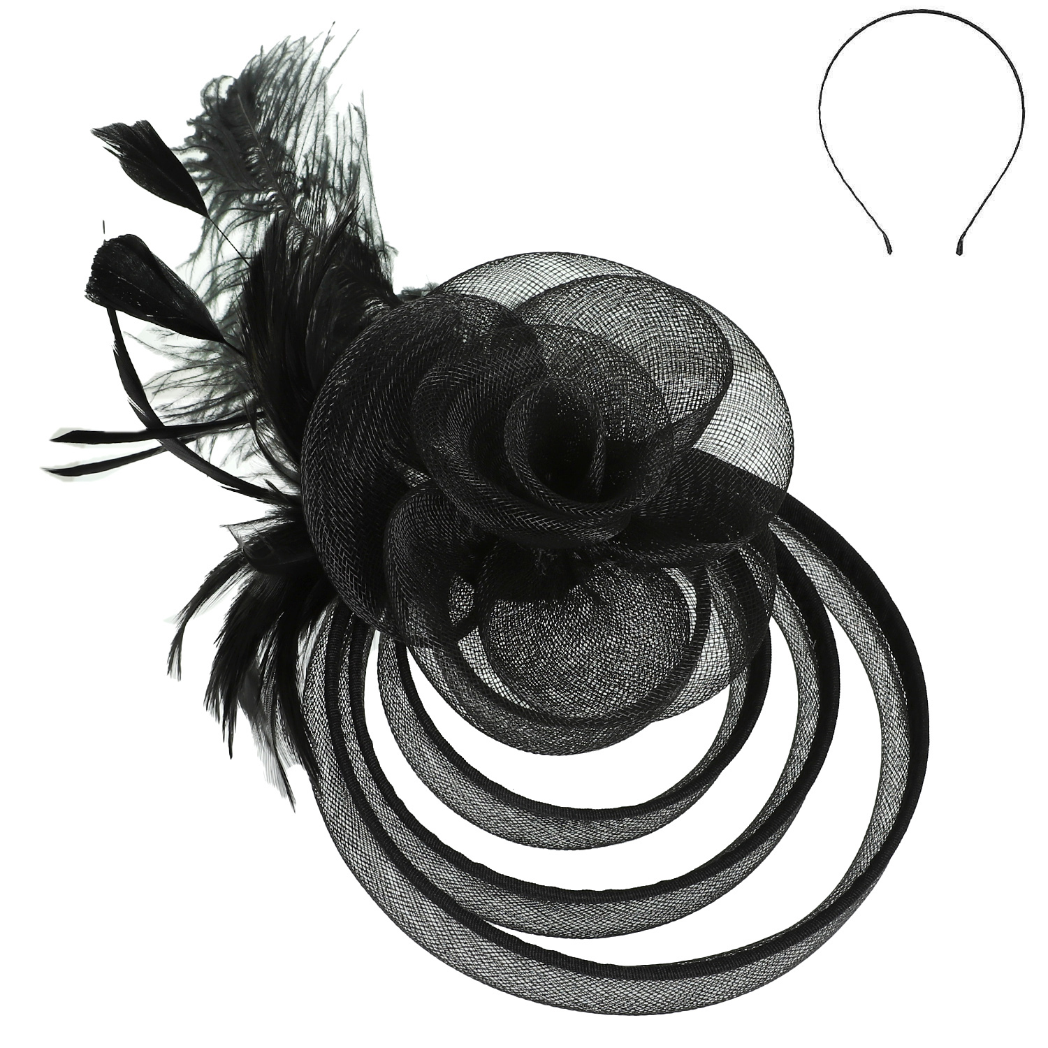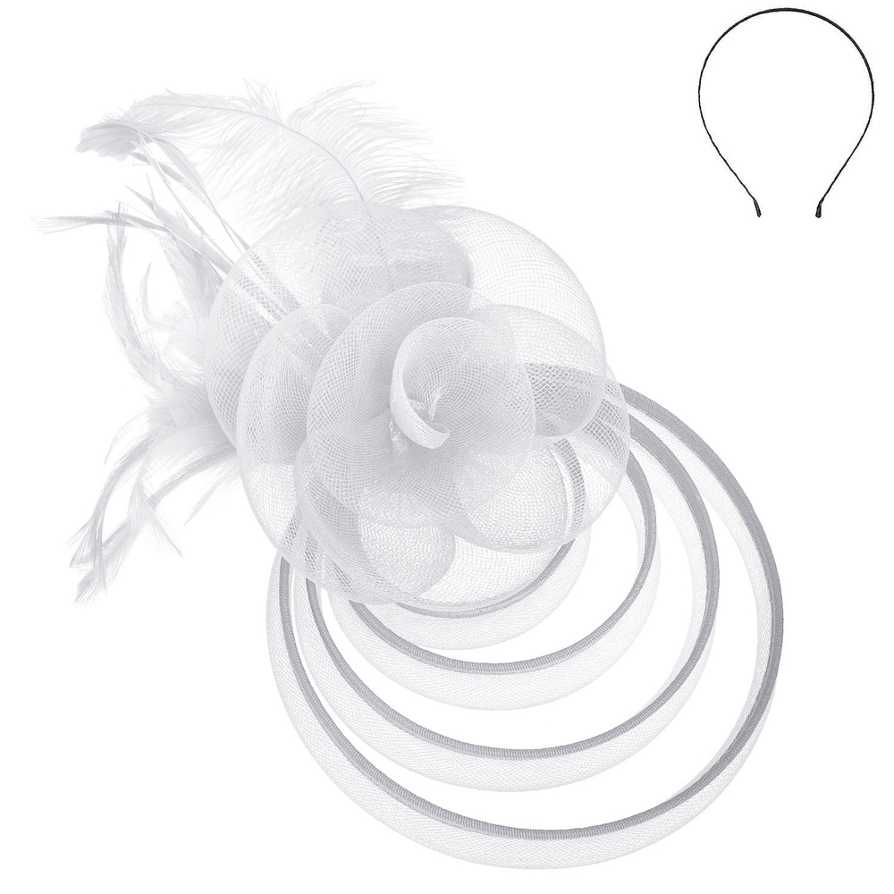 FLORAL FEATHERED SHEER MESH FASCINATOR WITH HAIR CLIP