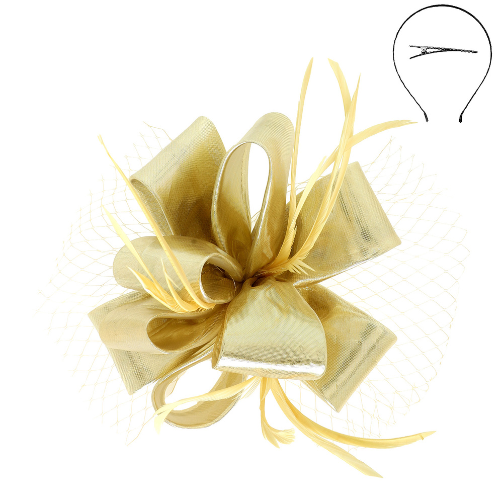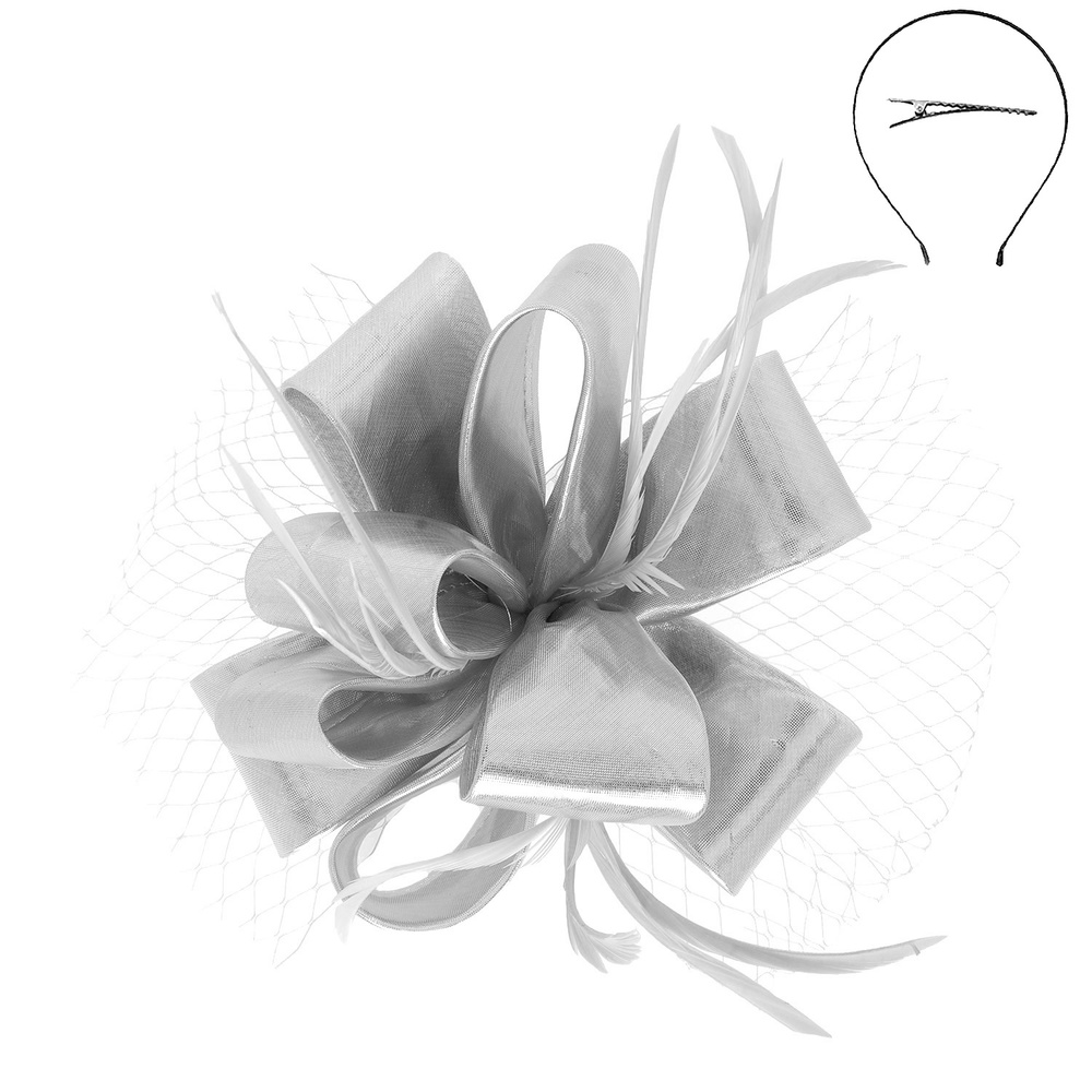 FEATHERED LOOPY BOW WITH NETTING SINAMAY FASCINATOR WITH CLIP AND HEADBAND