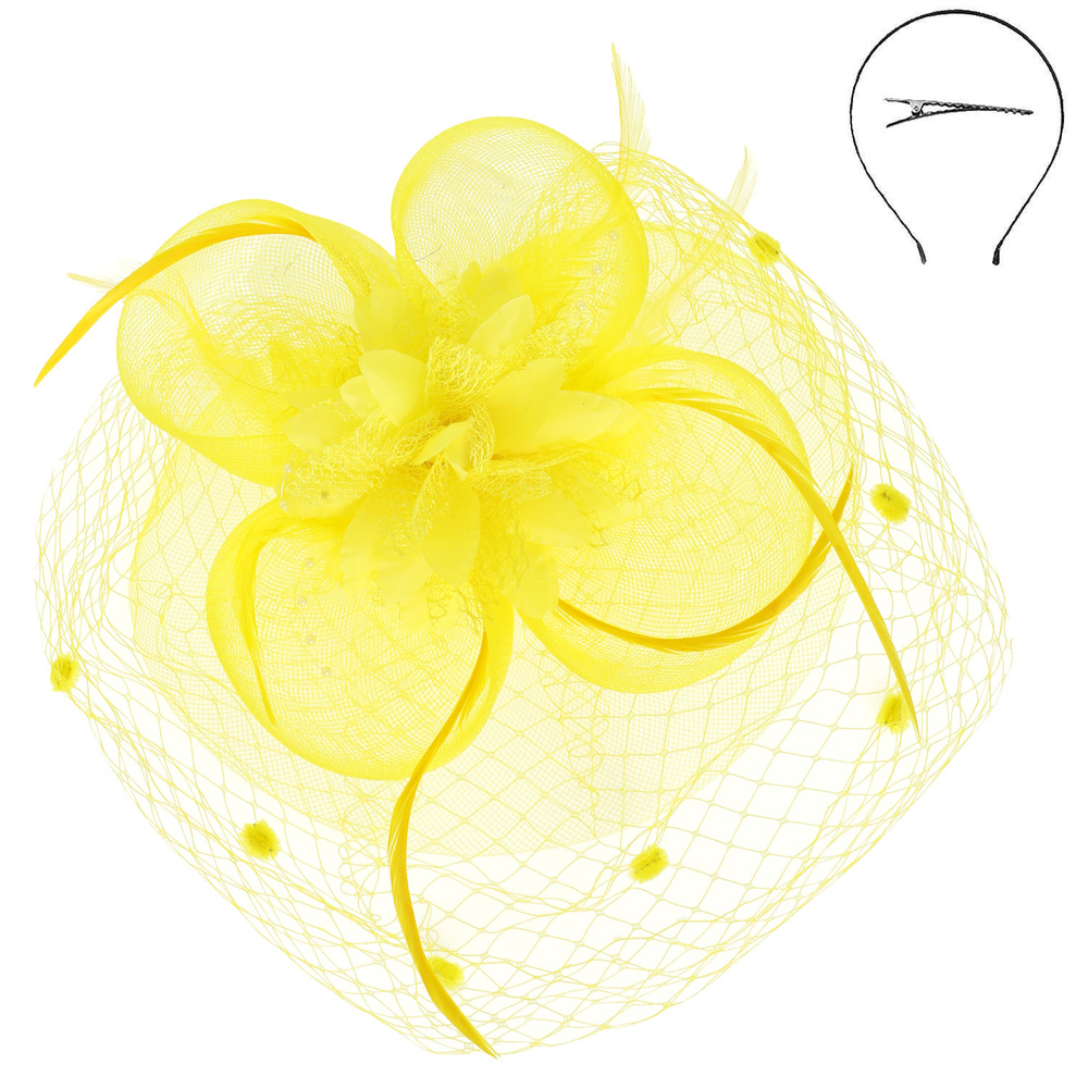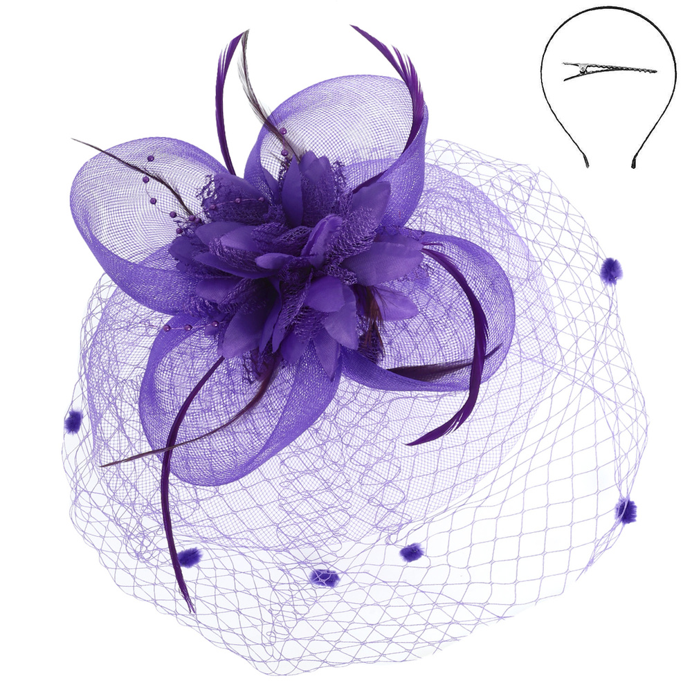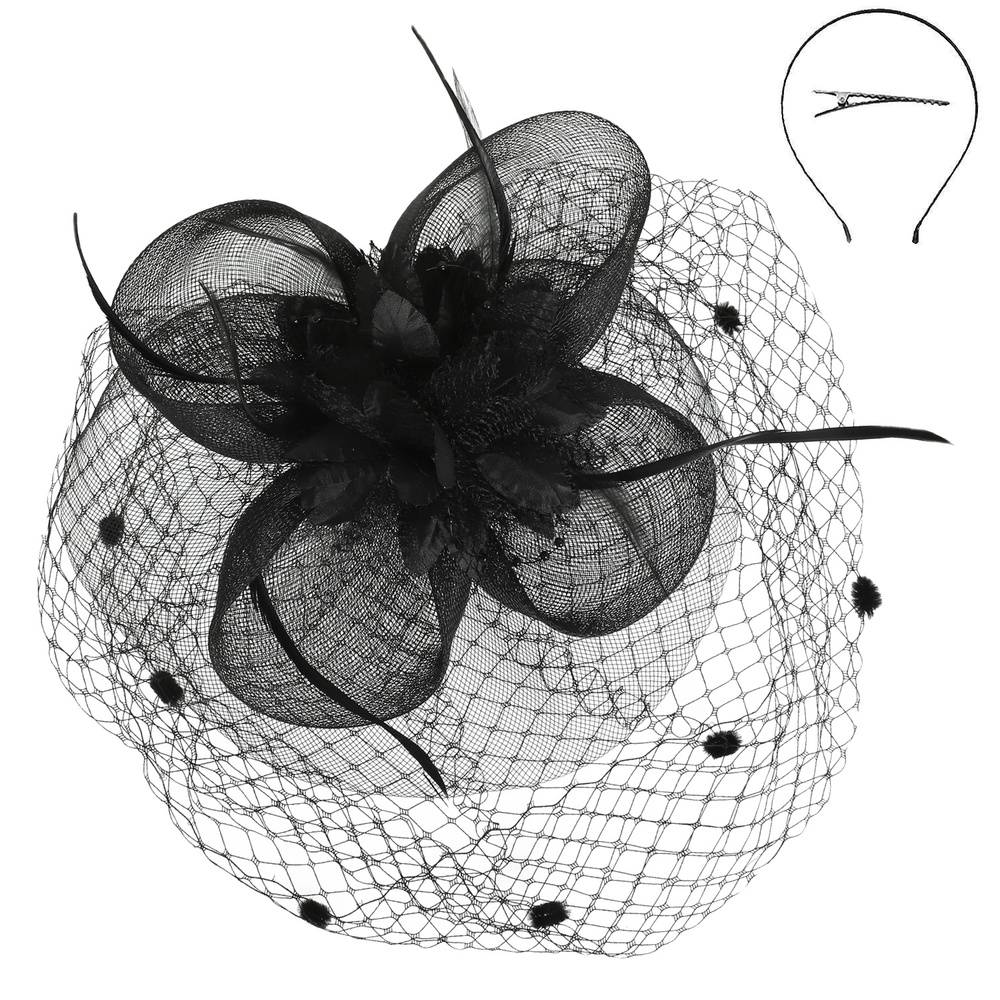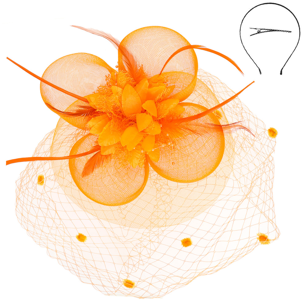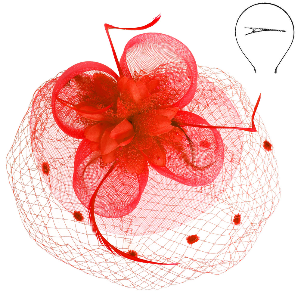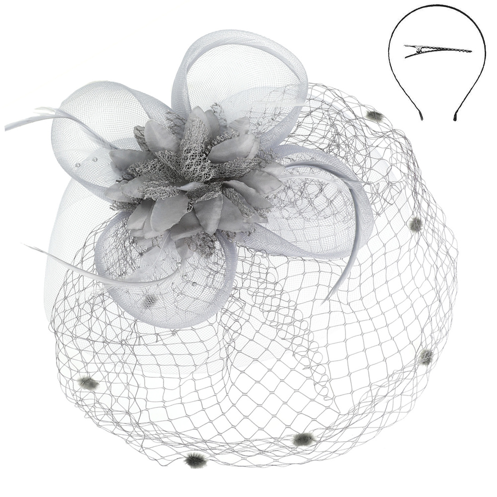 FLORAL FEATHER FISHNET VEILED SHEER MESH FASCINATOR WITH CLIP AND HEADBAND