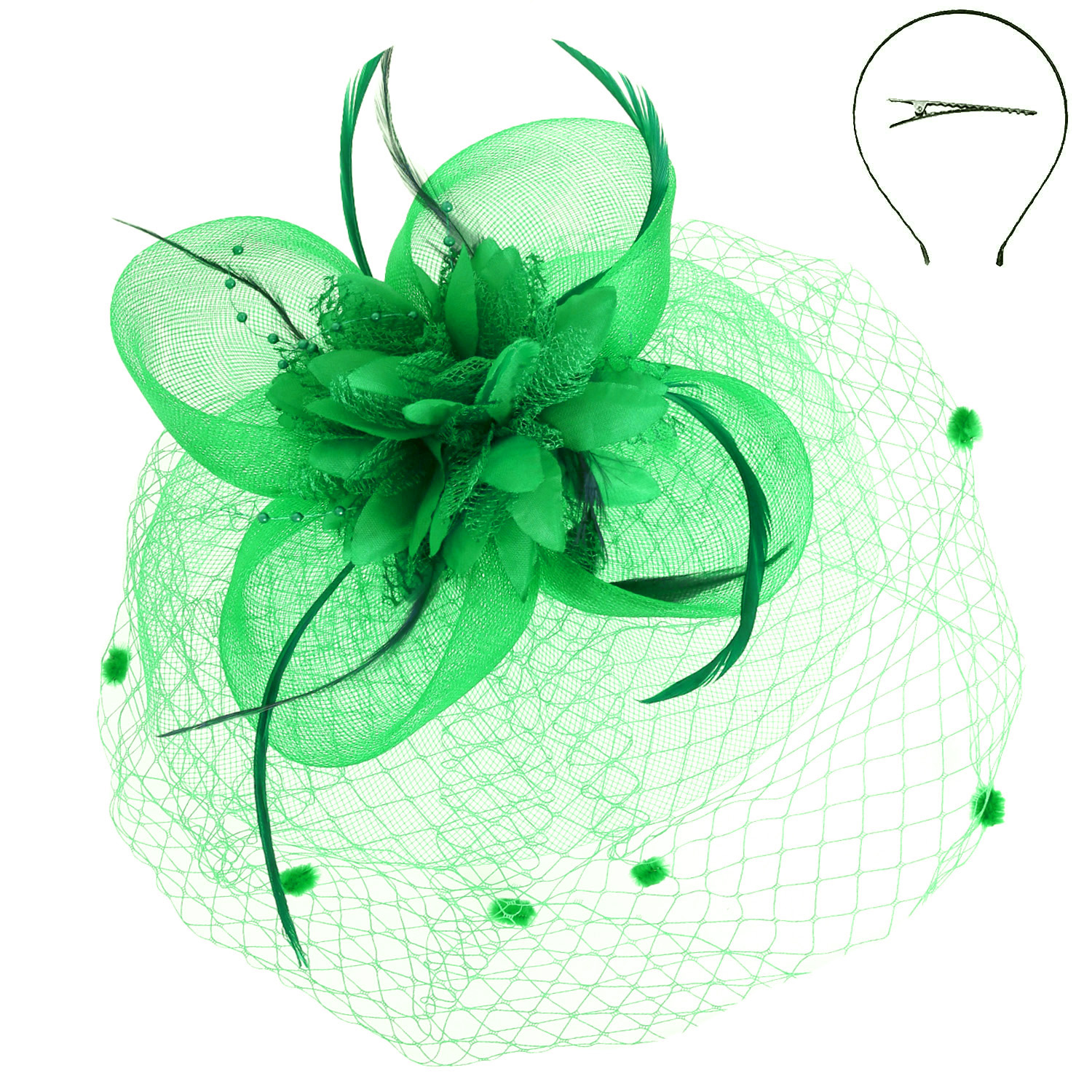 FLORAL FEATHER FISHNET VEILED SHEER MESH FASCINATOR WITH CLIP AND HEADBAND