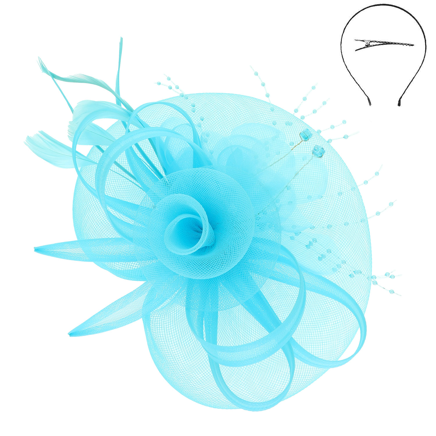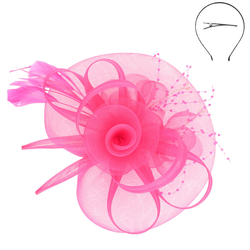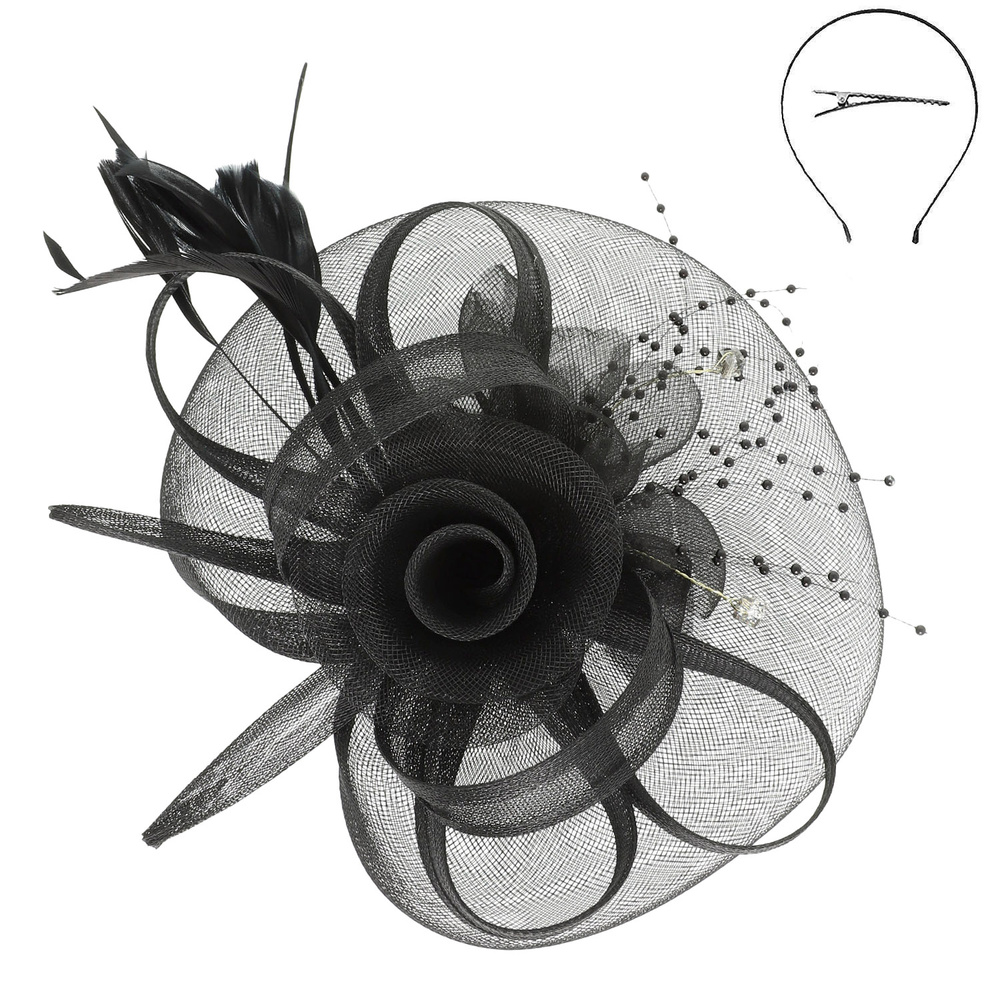 FLORAL FEATHERED MESH FASCINATOR WITH CLIP AND HEADBAND AND CRYSTAL ACCENTS