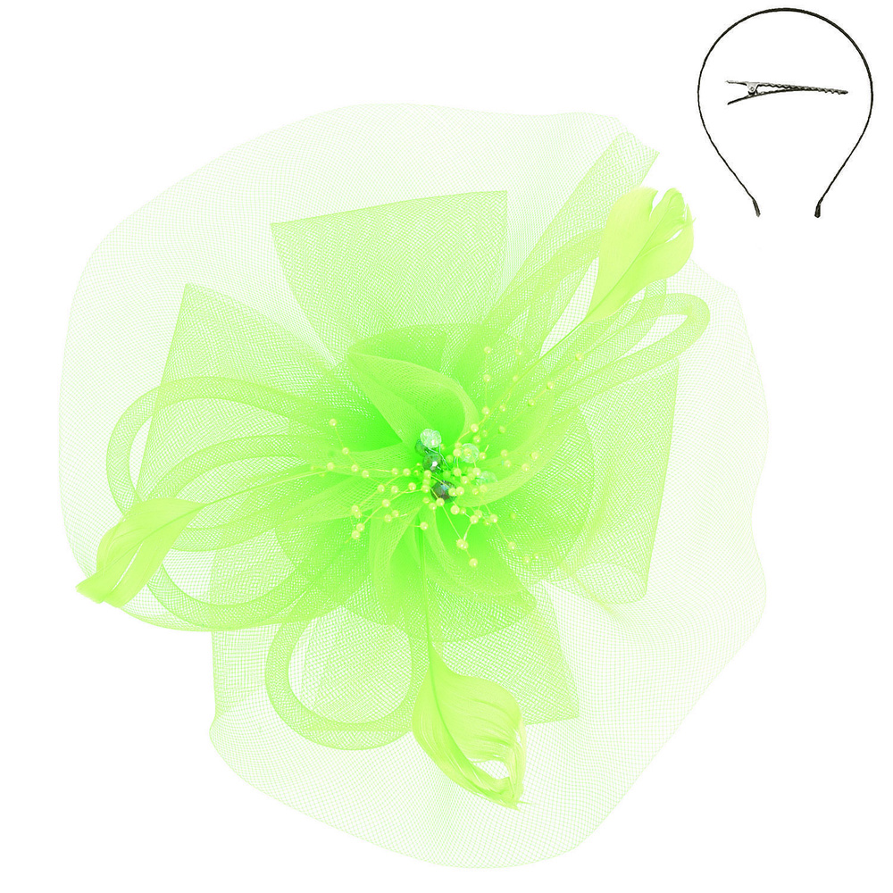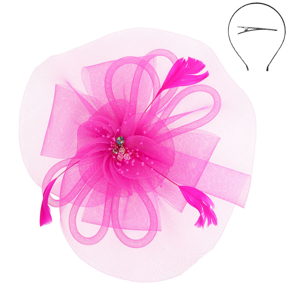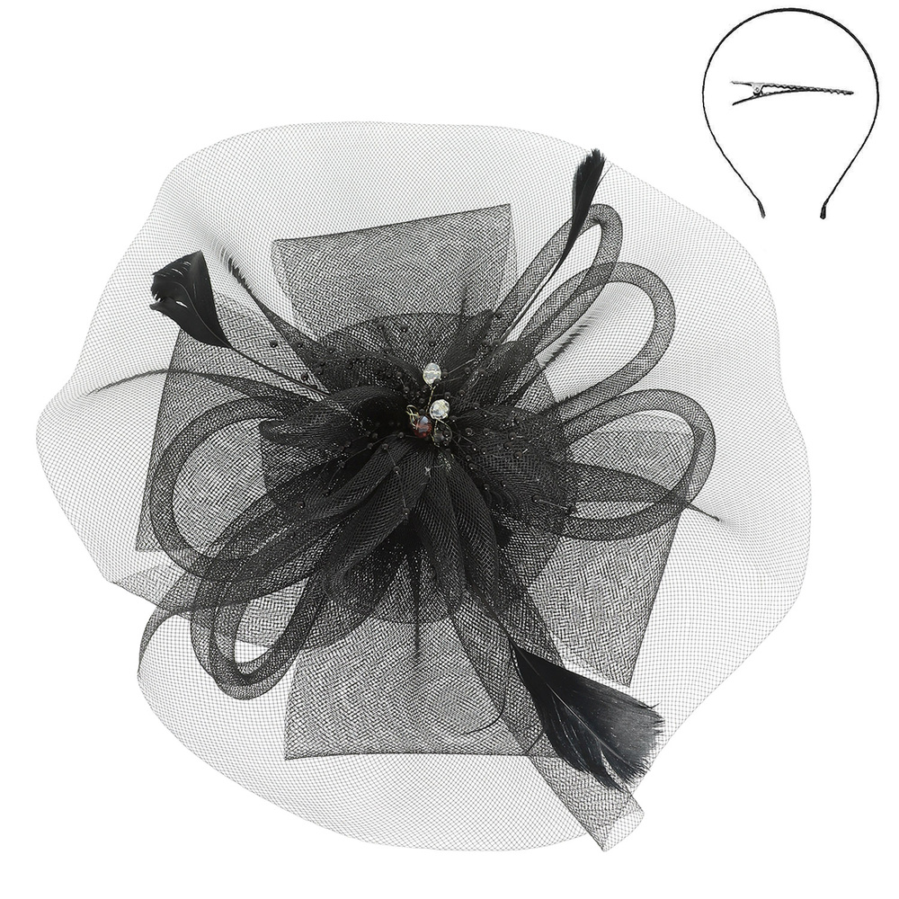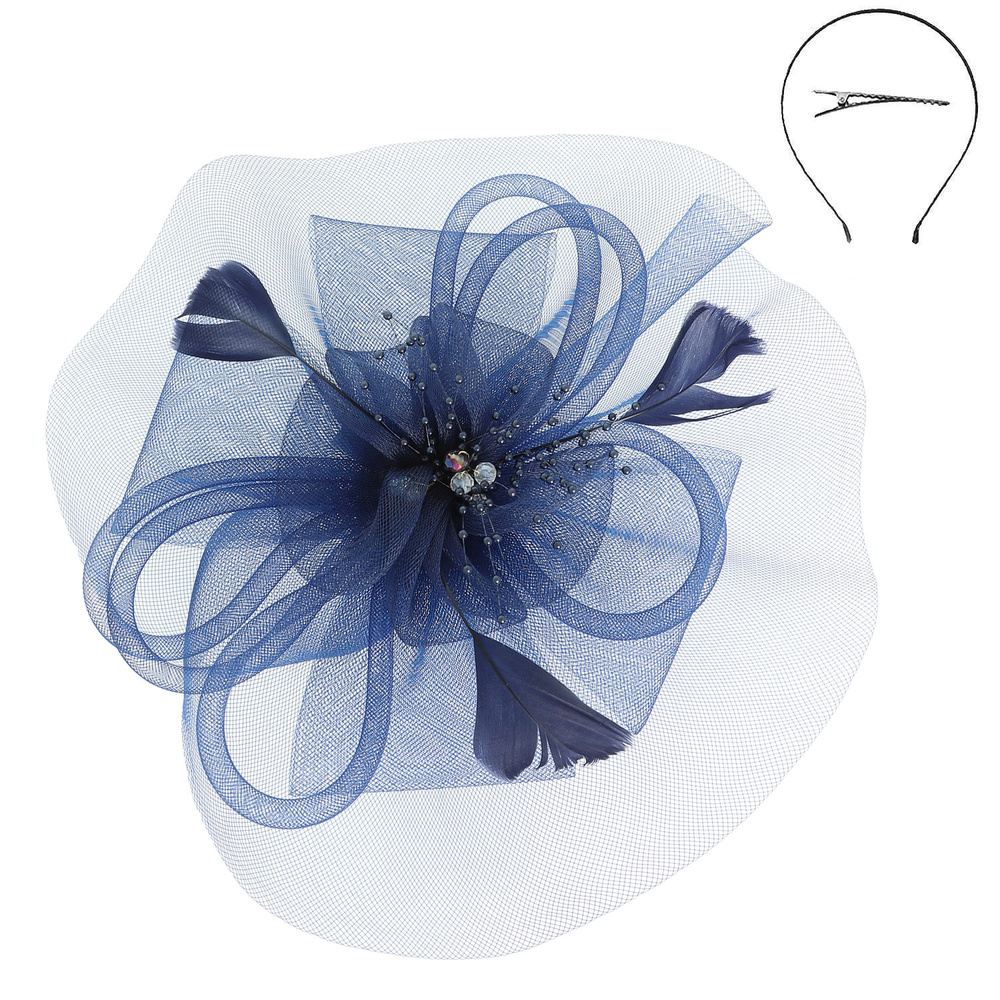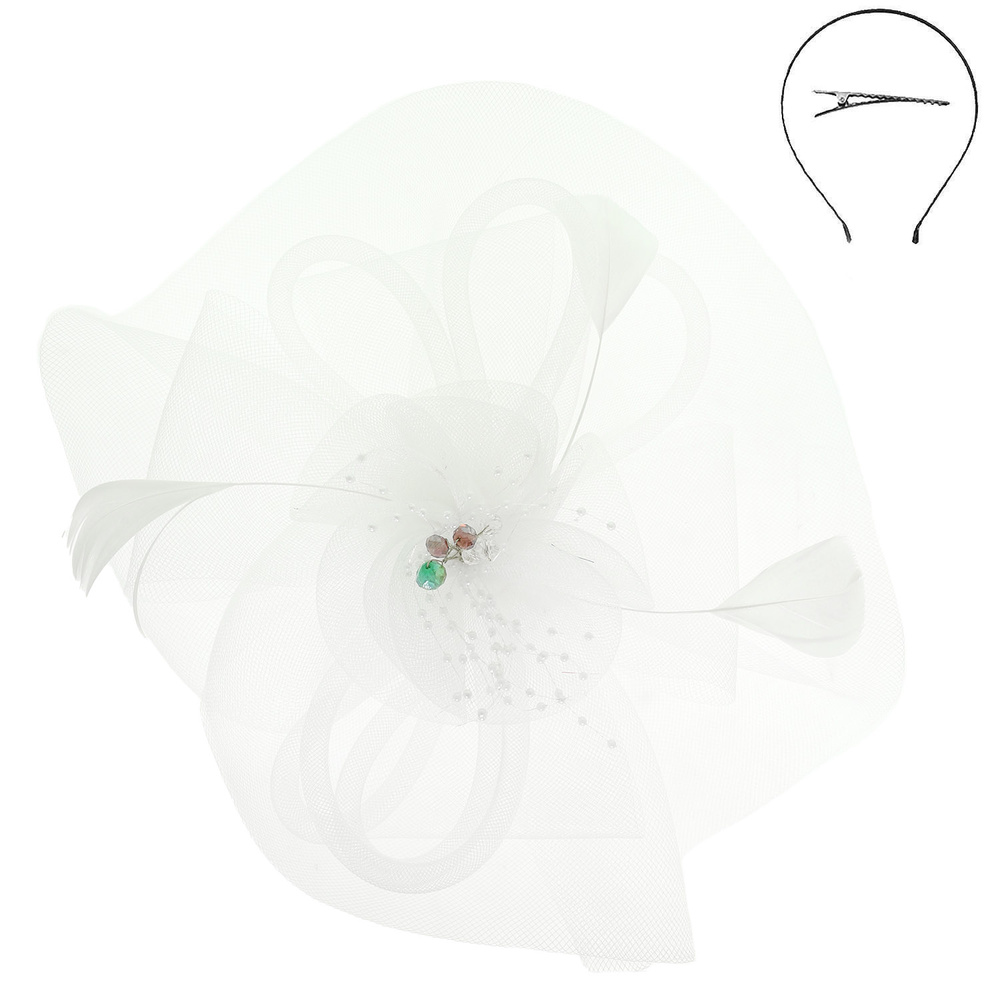 FLORAL FEATHERED SINAMAY MESH FASCINATOR WITH CLIP AND HEADBAND AND CRYSTAL ACCENTS