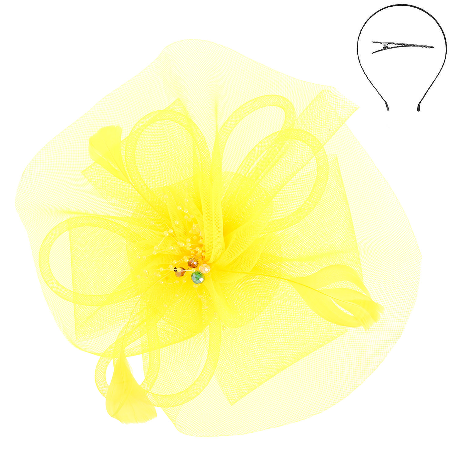 FLORAL FEATHERED SINAMAY MESH FASCINATOR WITH CLIP AND HEADBAND AND CRYSTAL ACCENTS