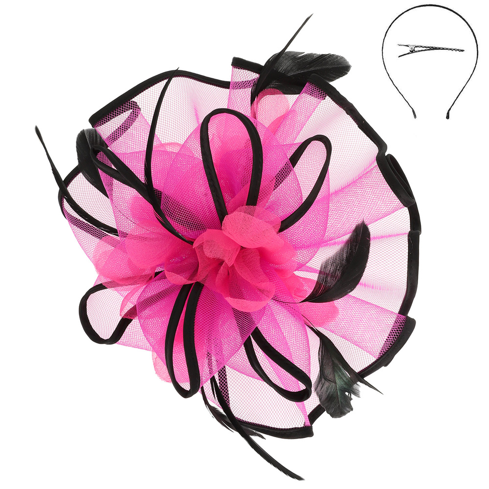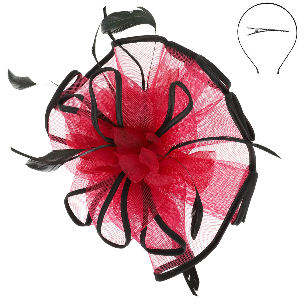 FLORAL FEATHERED MESH FASCINATOR WITH CLIP AND HEADBAND