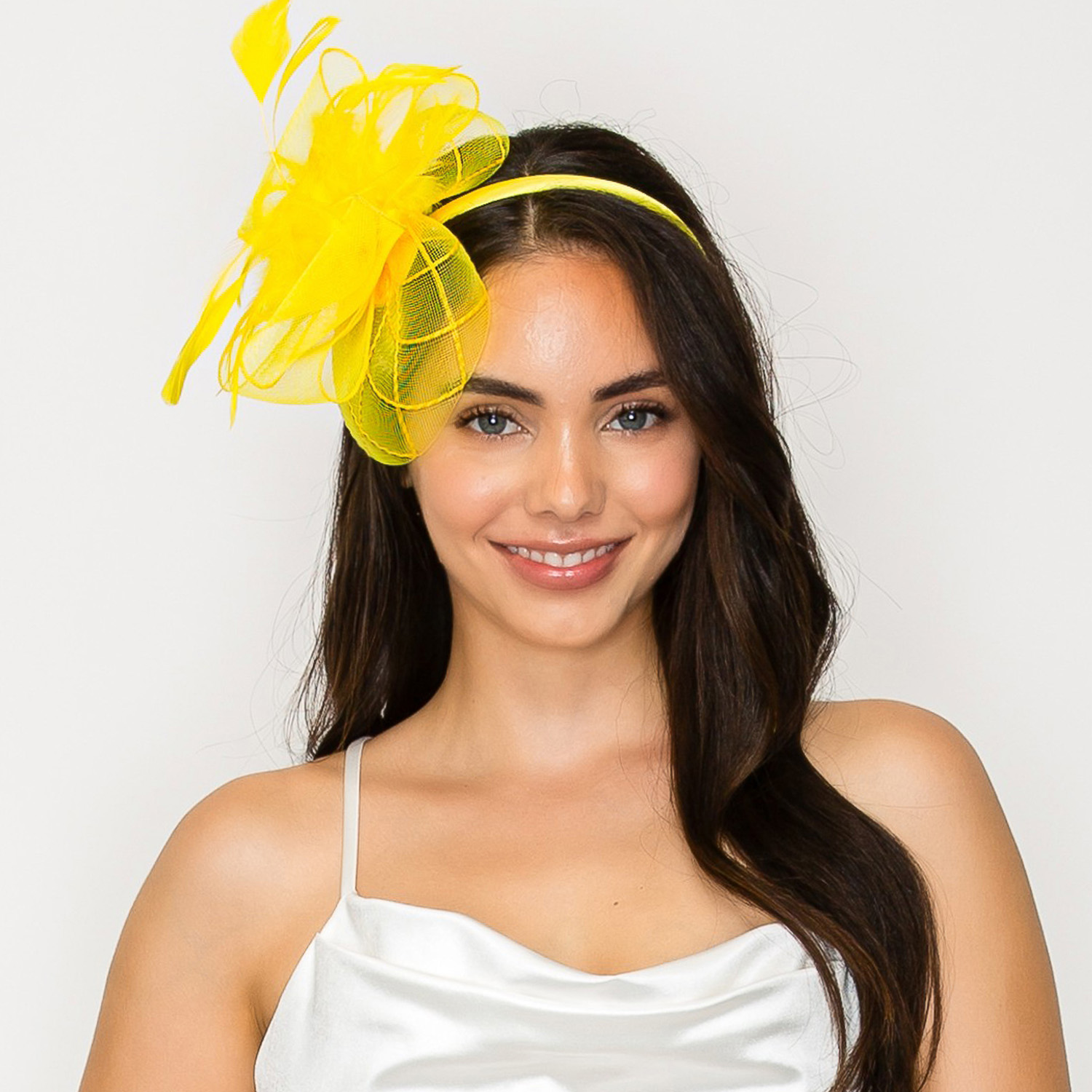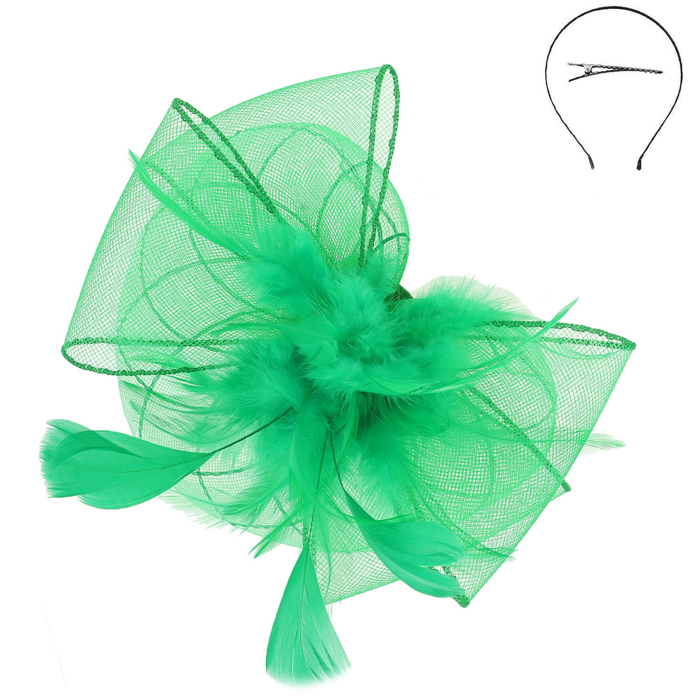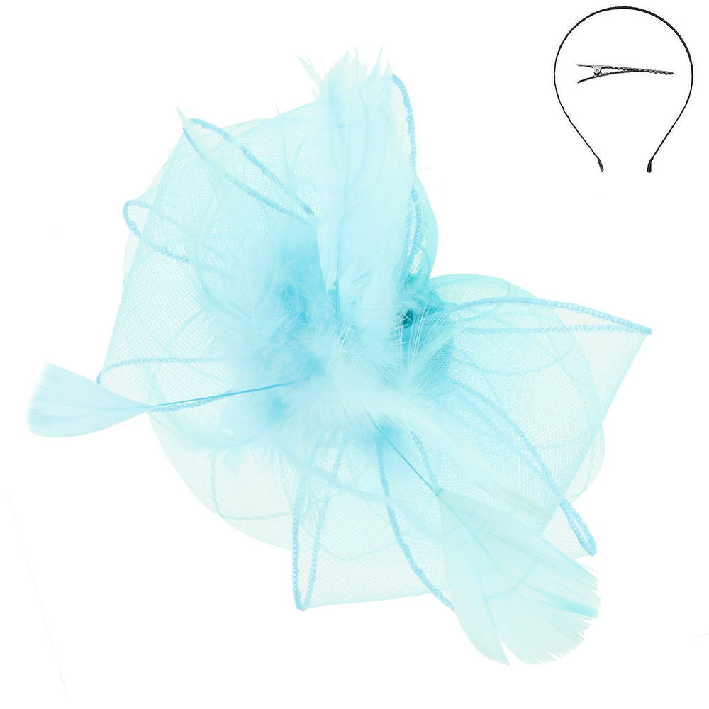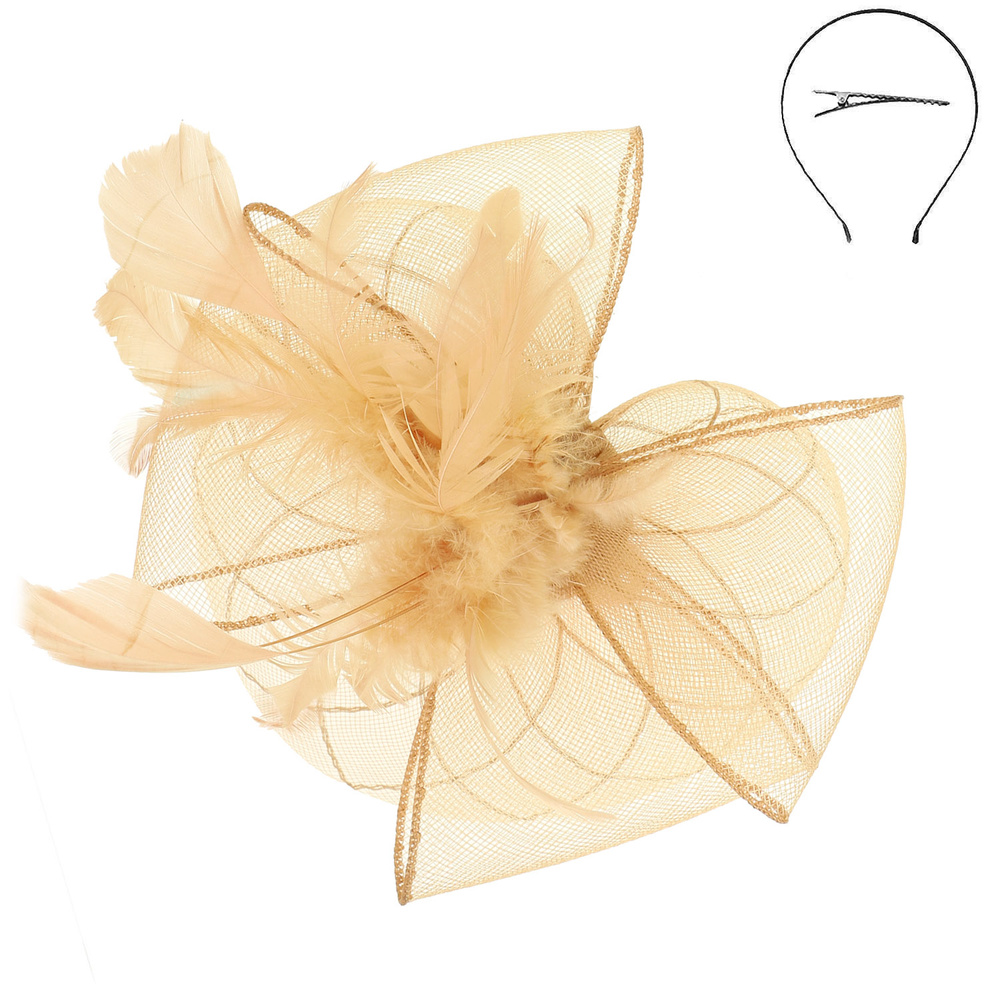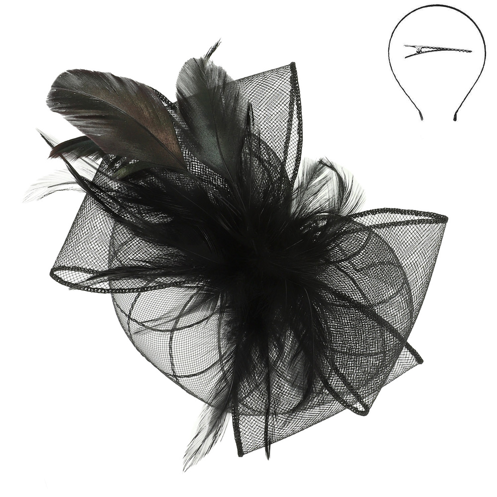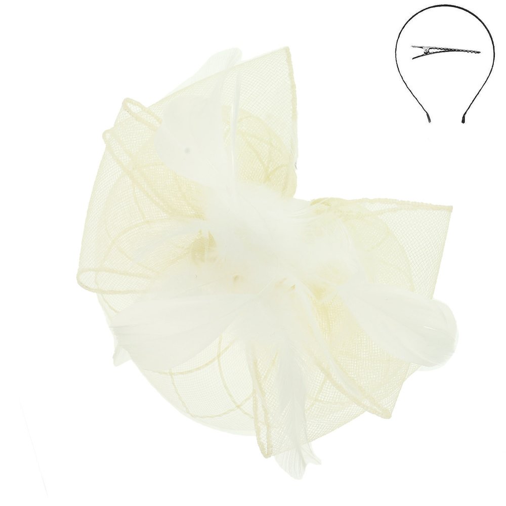 FEATHER AND MESH FASCINATOR WITH CLIP AND HEADBAND ATTACHMENT