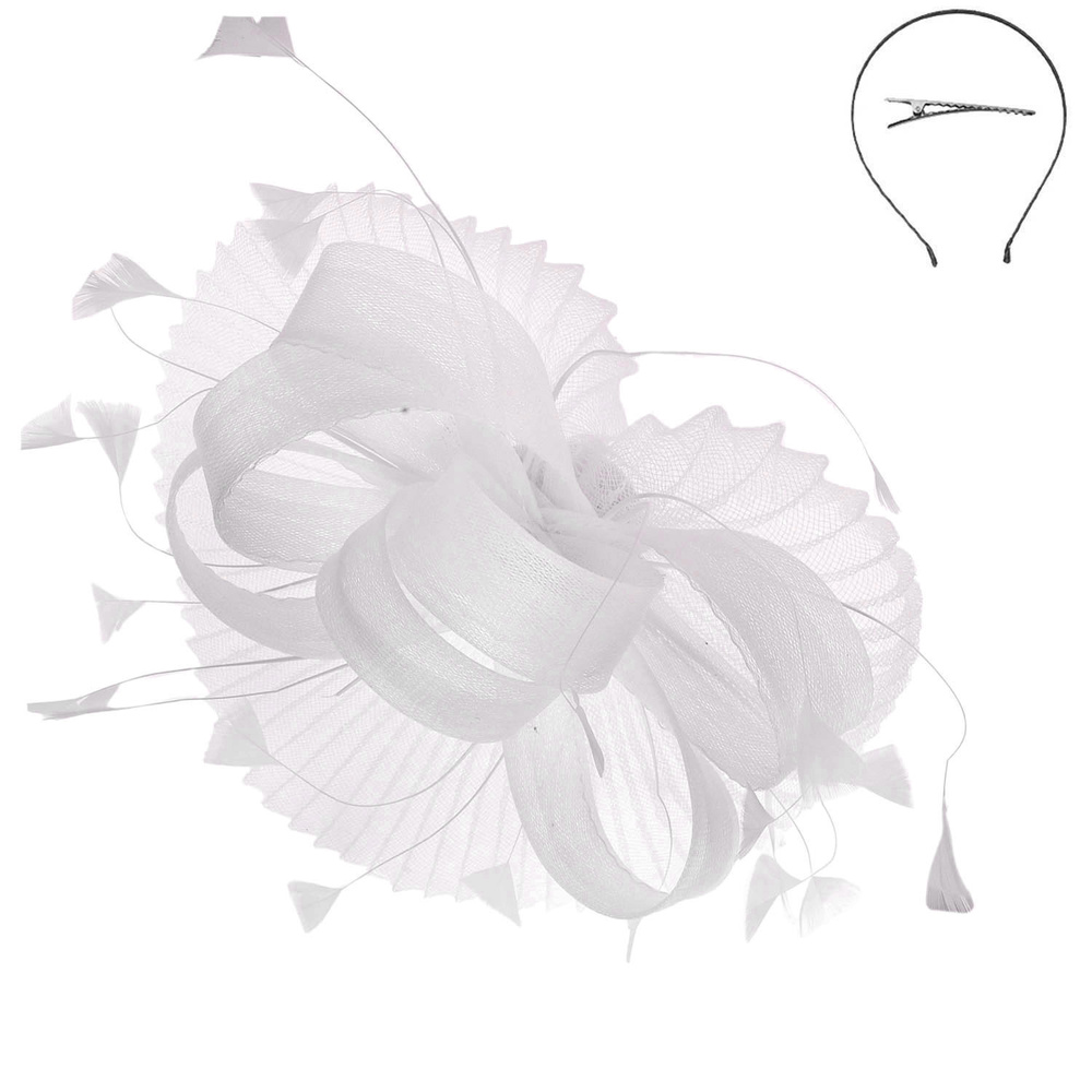 SHEER MESH LOOP FEATHER SPRAY FASCINATOR WITH HEADBAND AND HAIR CLIP