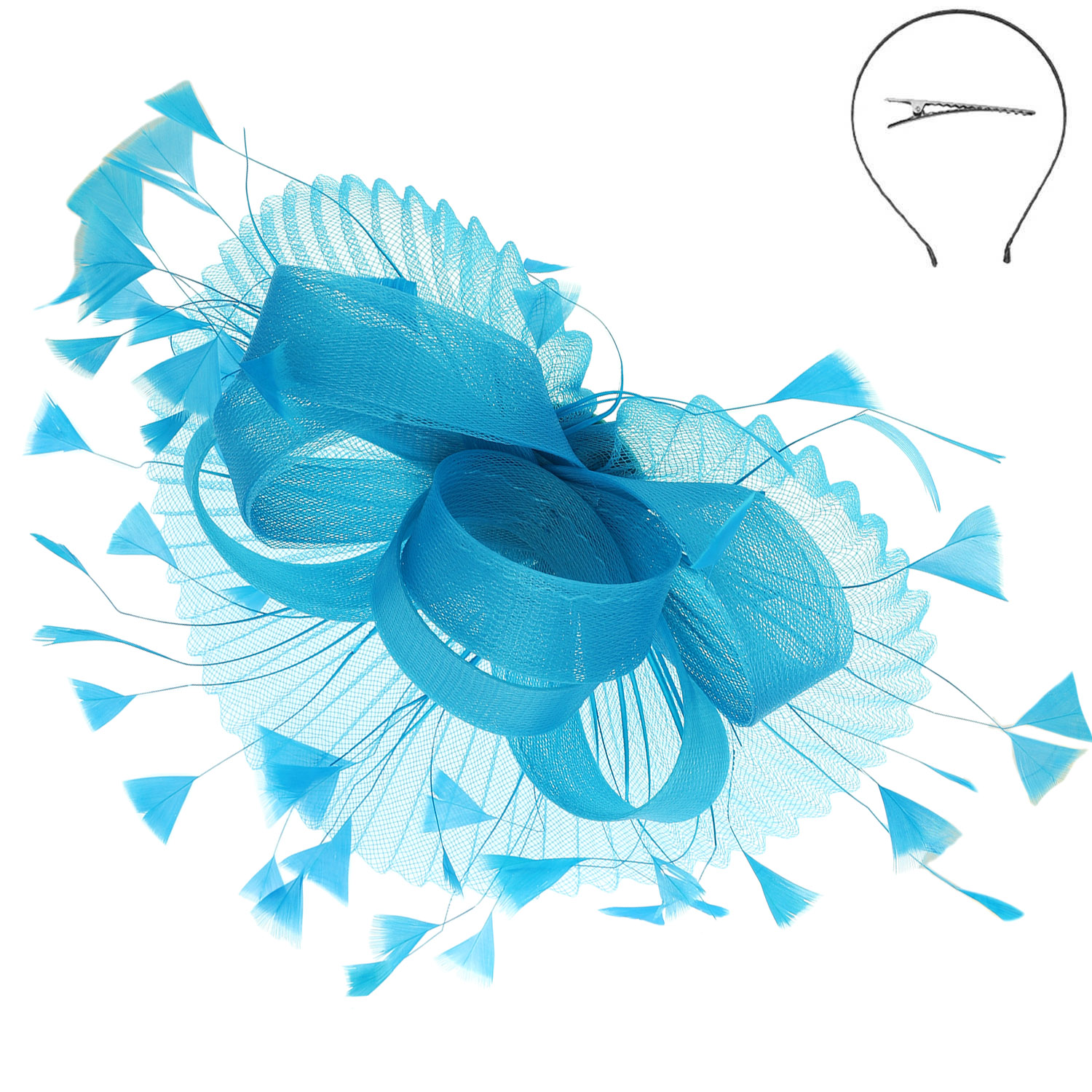SHEER MESH LOOP FEATHER SPRAY FASCINATOR WITH HEADBAND AND HAIR CLIP