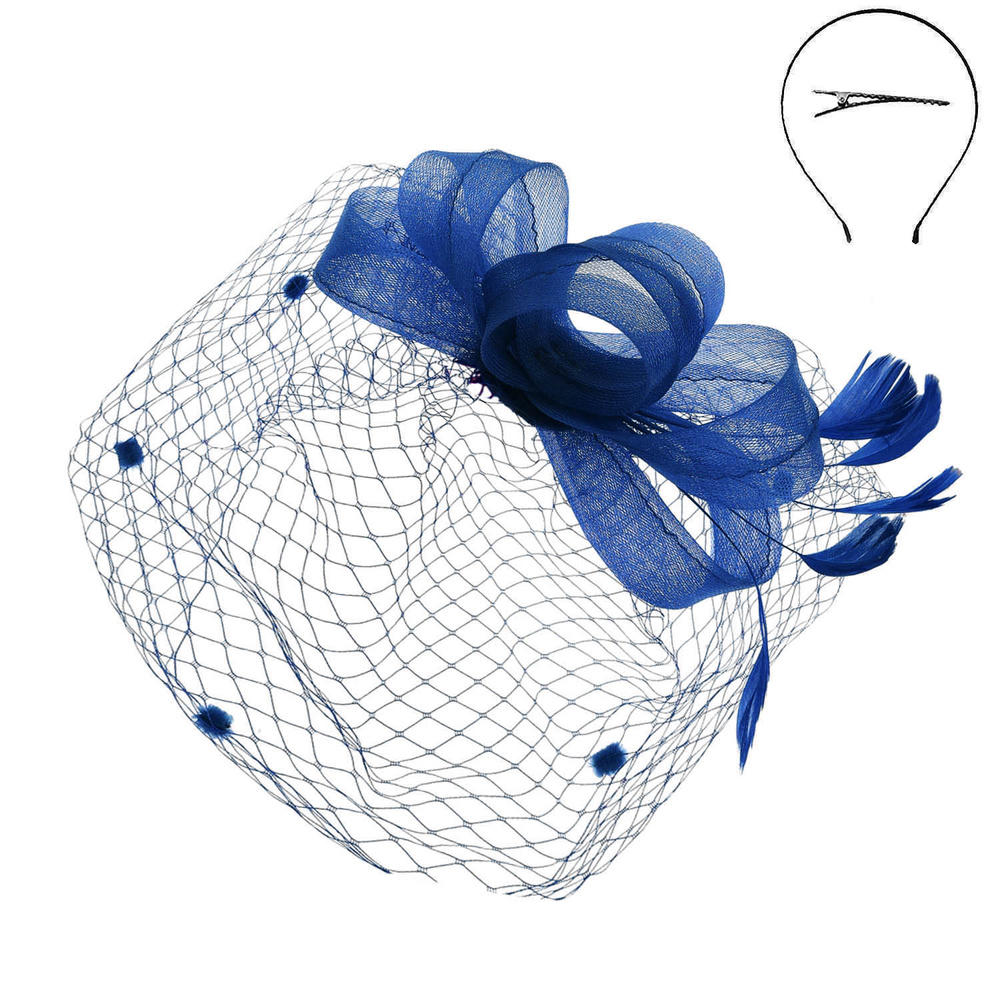 ORGANZA LOOP BOW FASCINATOR WITH FEATHER DETAILS AND NET VEIL
