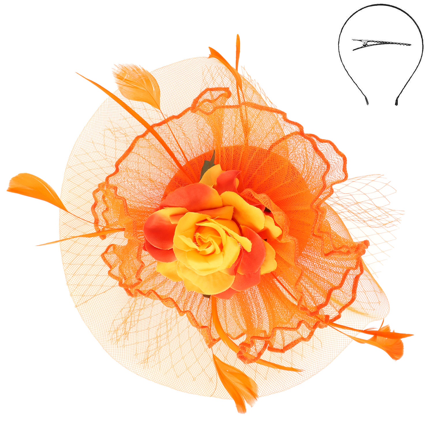 FEATHERED ROSE BLOOM MESH FASCINATOR WITH CLIP AND HEADBAND