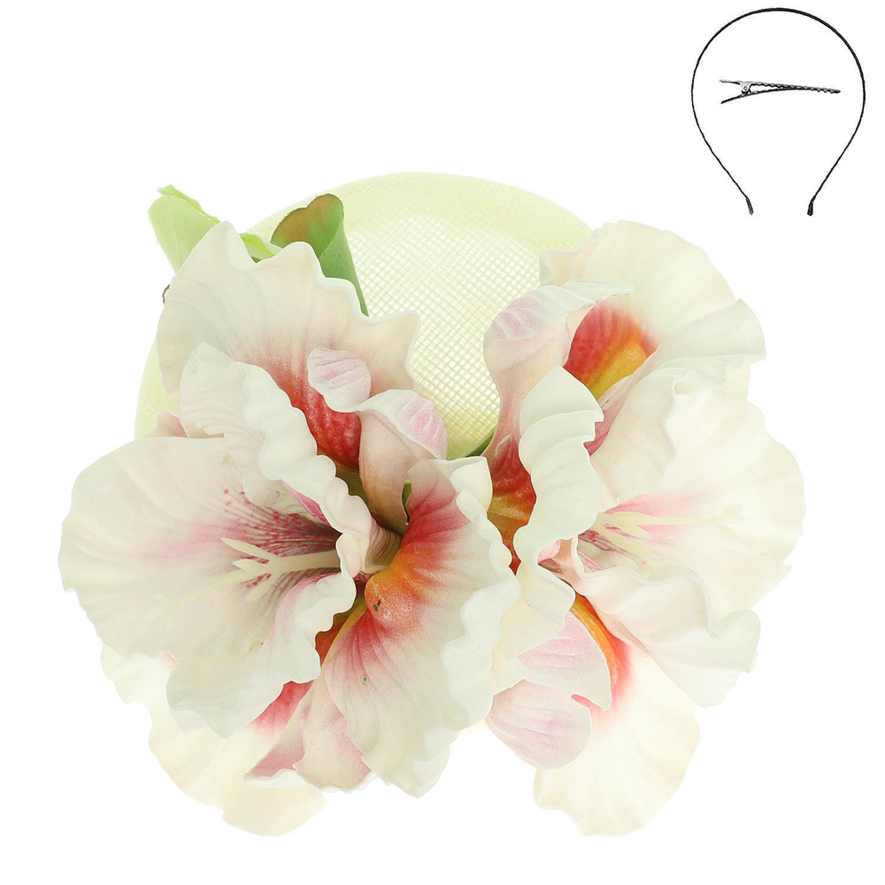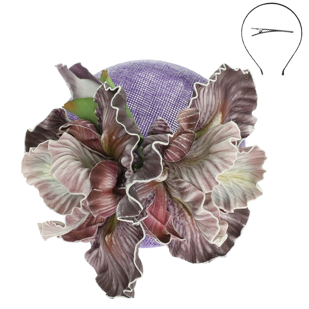 IRISES STYLED FASTENED DISC FASCINATOR WITH HAIR CLIP AND HEADBAND