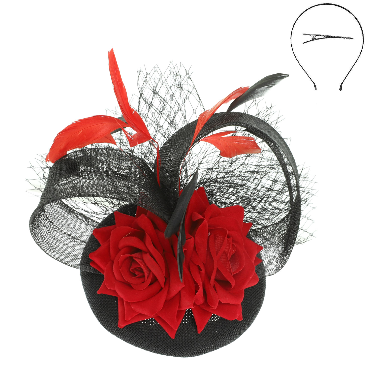 FORAL FEATHERED SINAMAY DISC FASCINATOR WITH HAIR CLIP AND HEADBAND