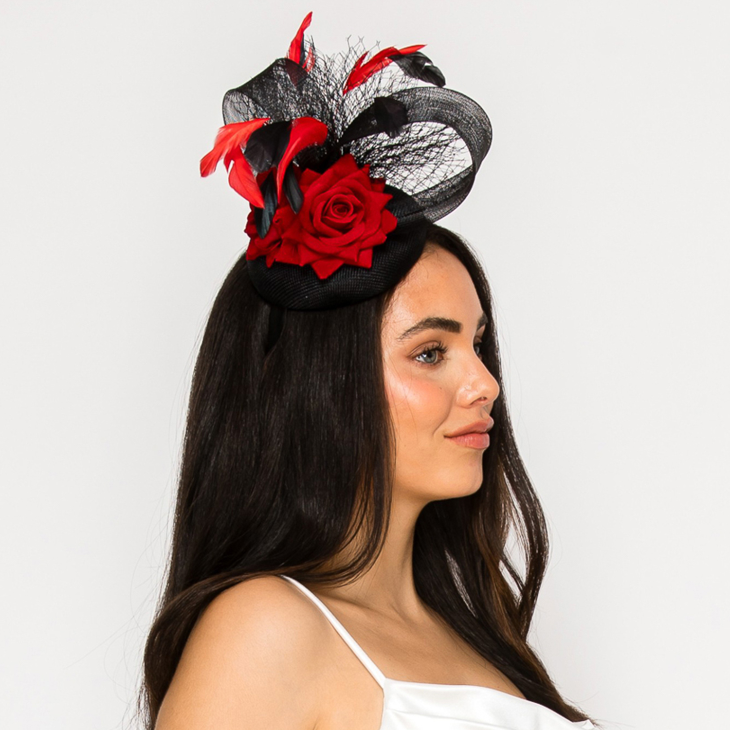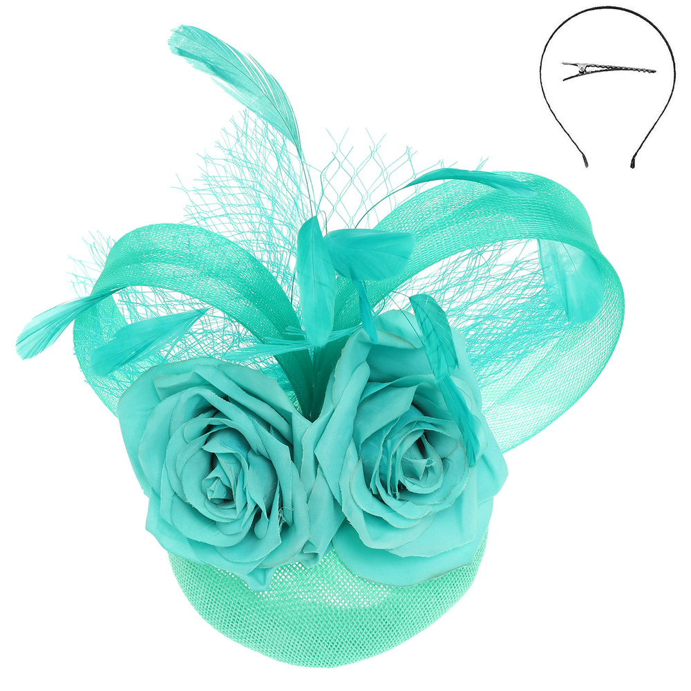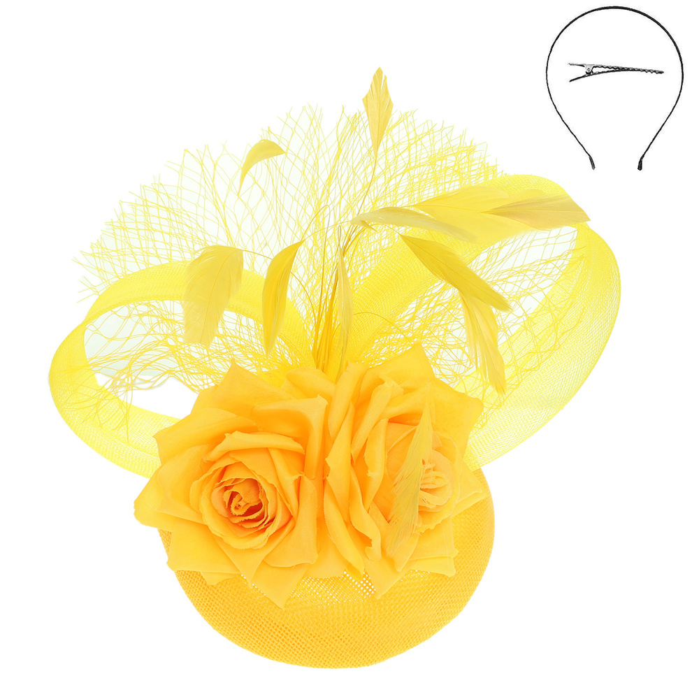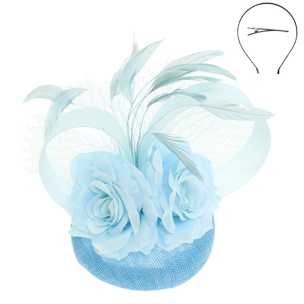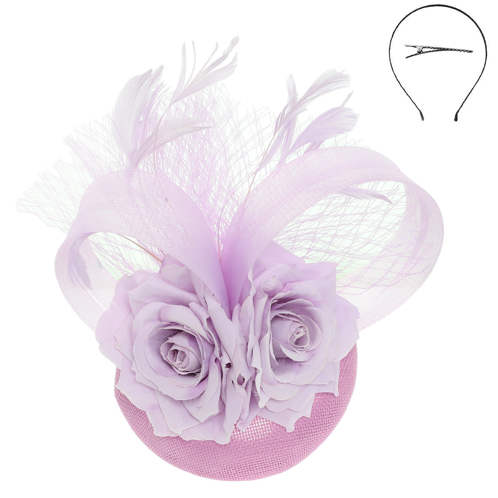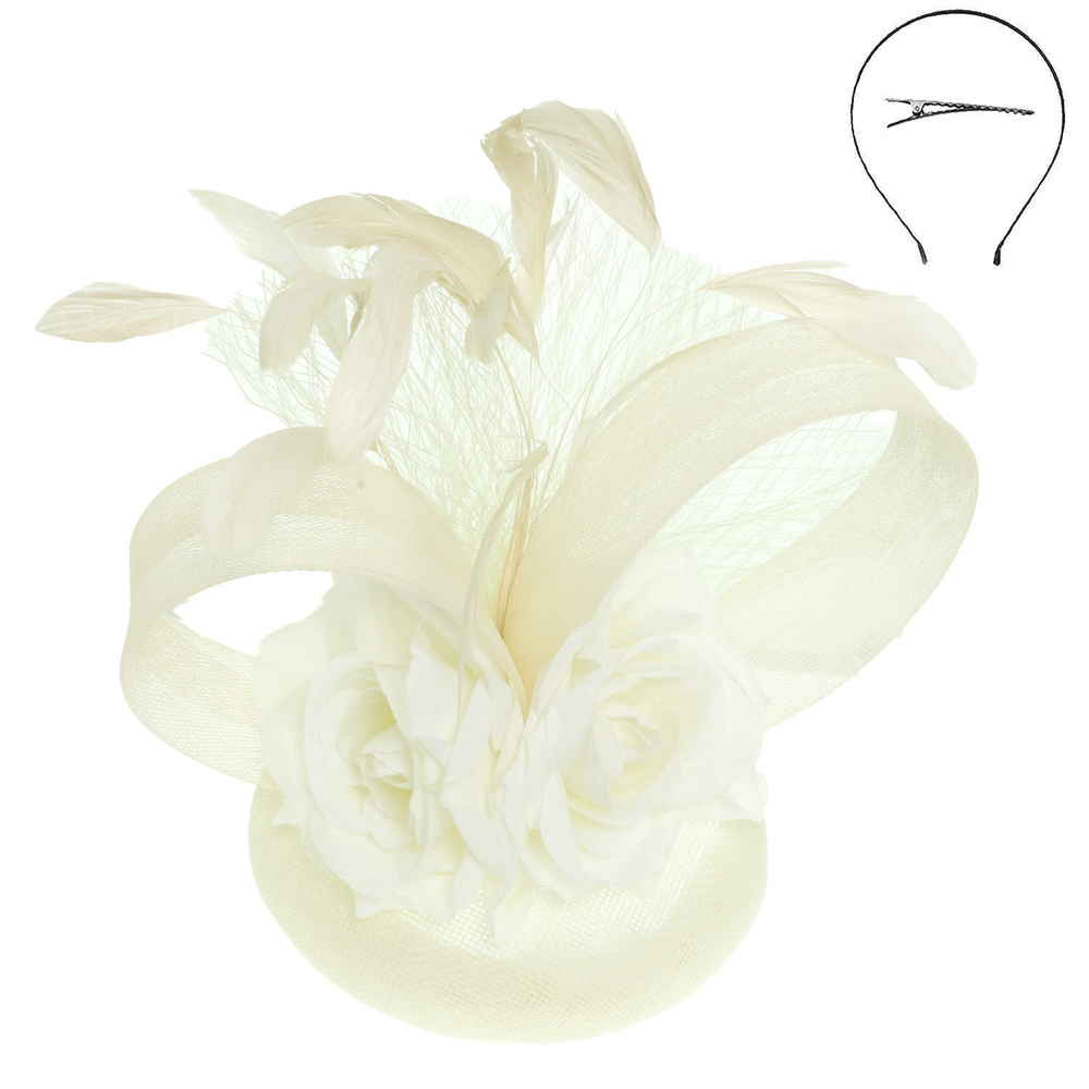 FORAL FEATHERED SINAMAY DISC FASCINATOR WITH HAIR CLIP AND HEADBAND