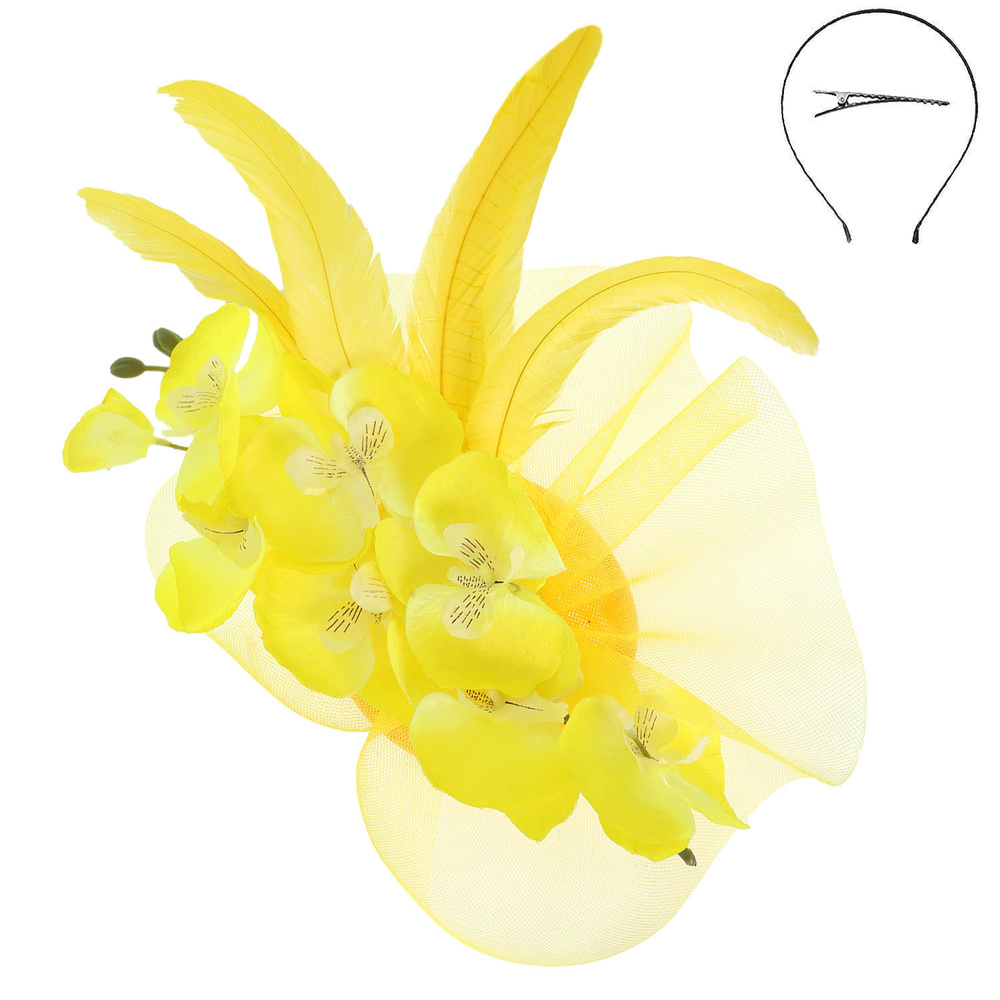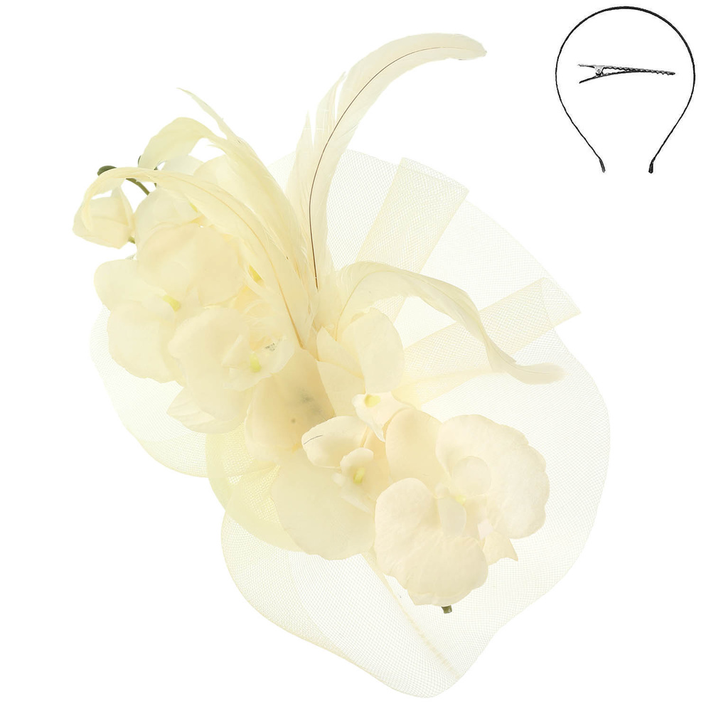 ORCHIDS STYLED FASTENED DISC FASCINATOR WITH HAIR CLIP AND HEADBAND