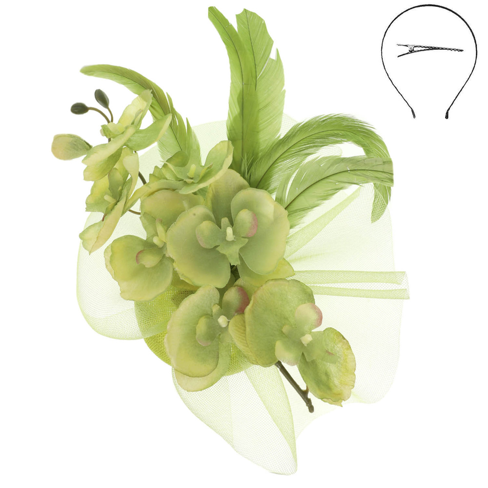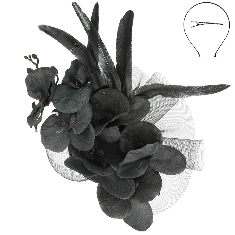 ORCHIDS STYLED FASTENED DISC FASCINATOR WITH HAIR CLIP AND HEADBAND