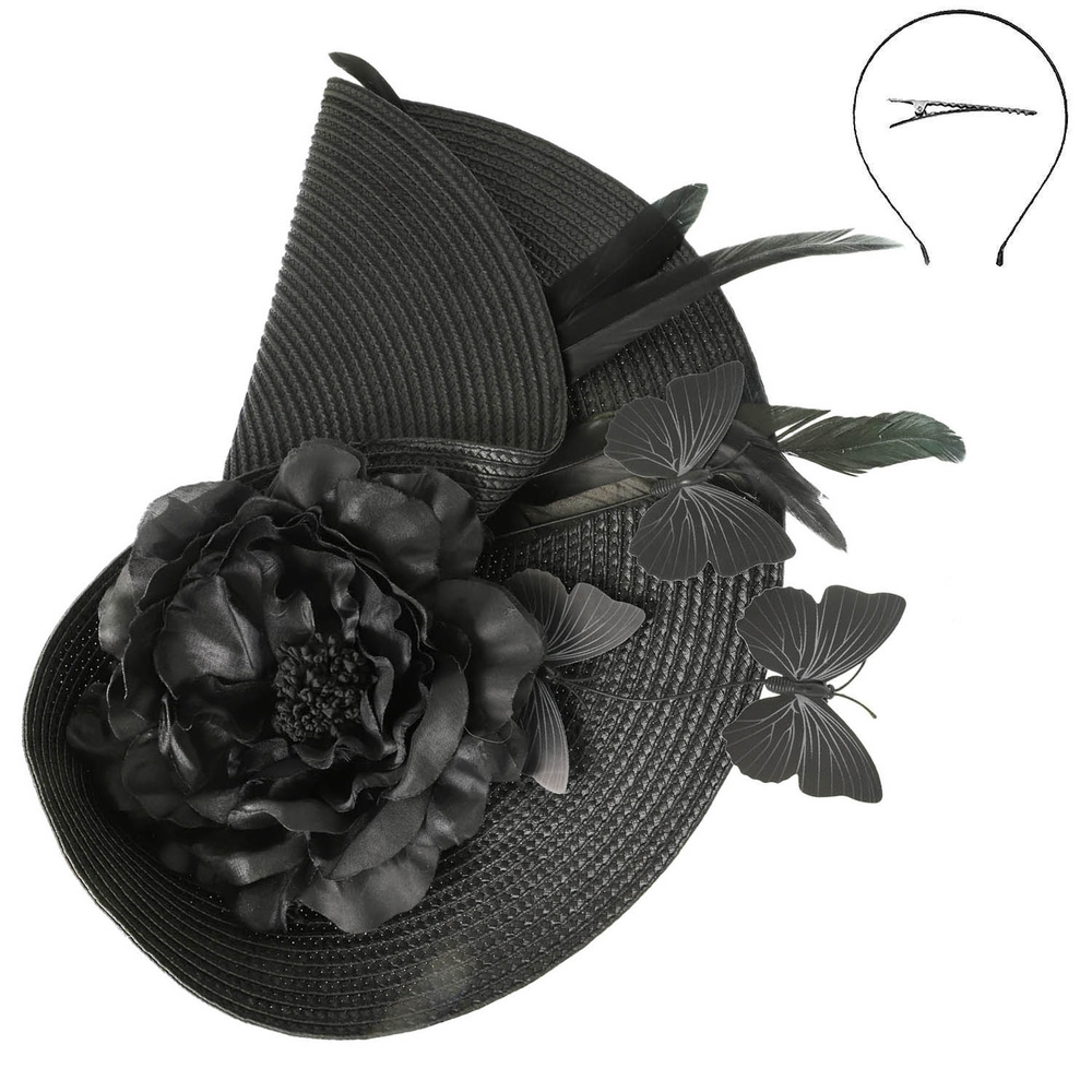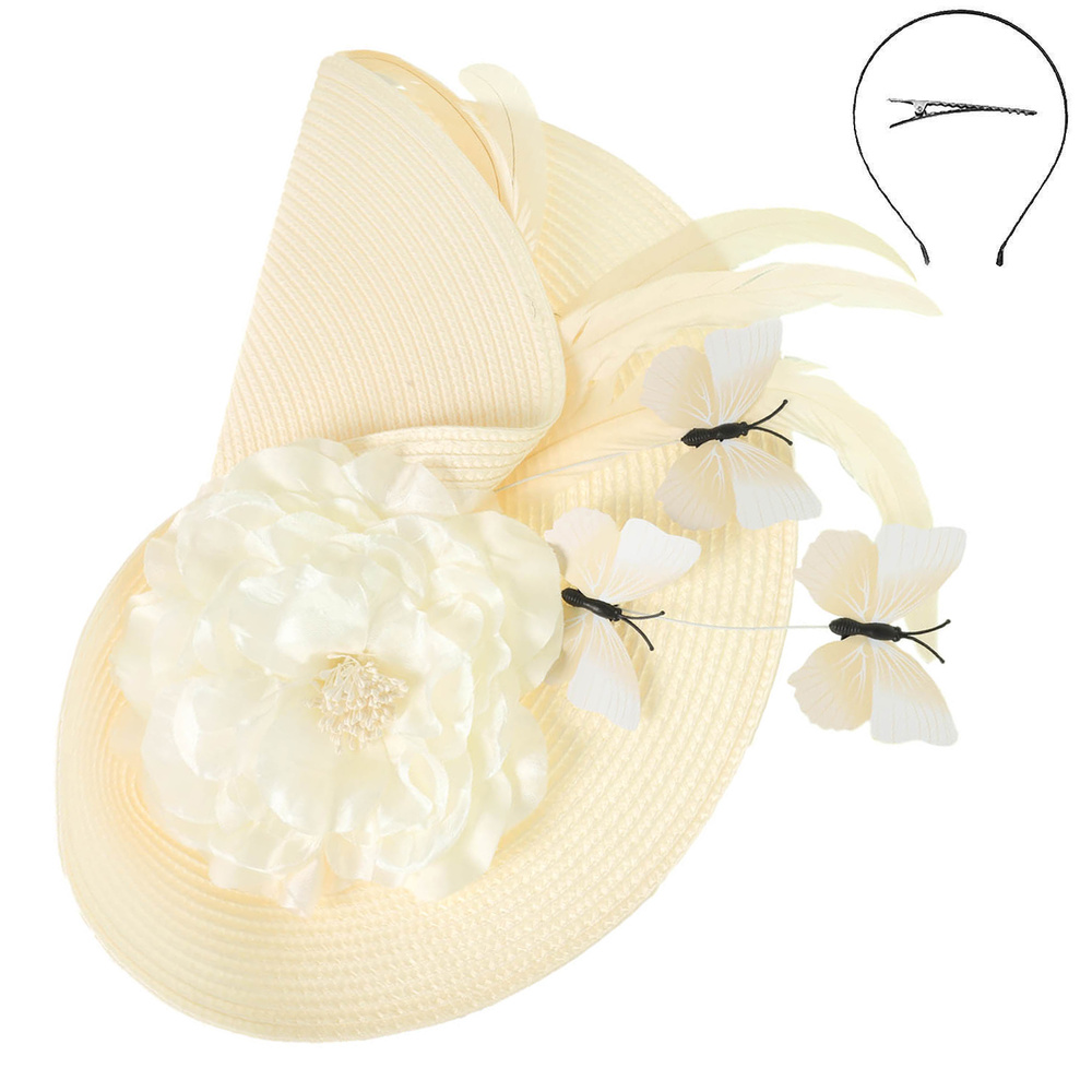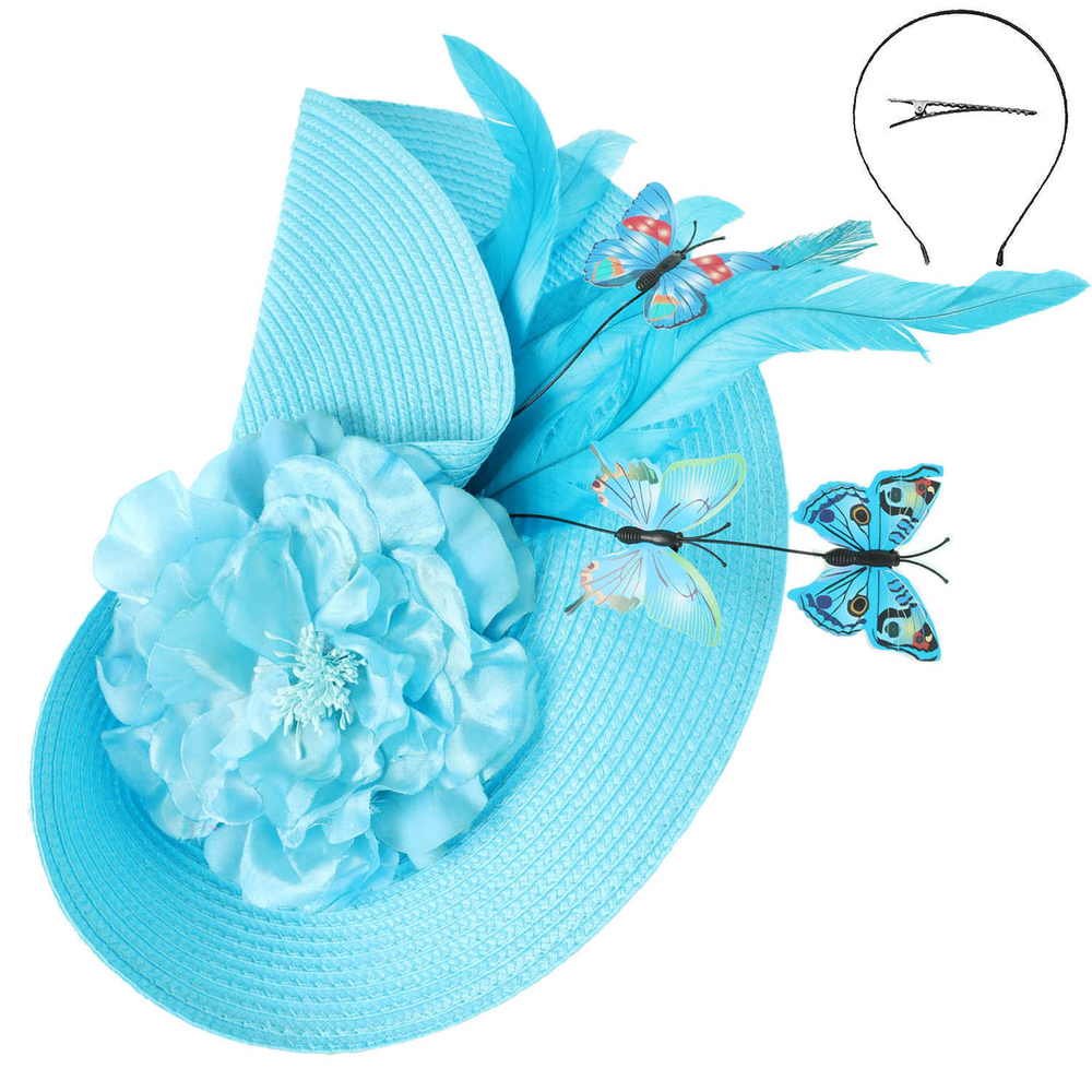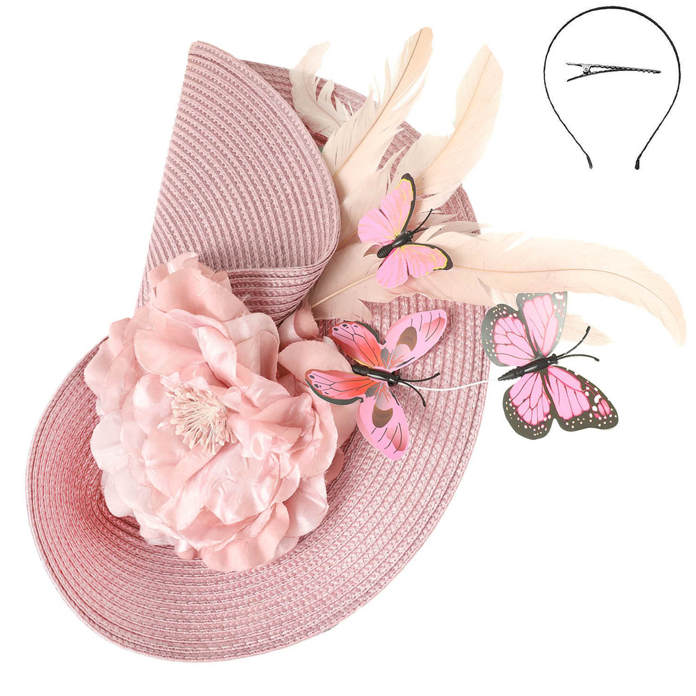 WIDE-UP BRIM FEATHERED PEONY FASCINATOR WITH HAIR CLIP AND HEADBAND