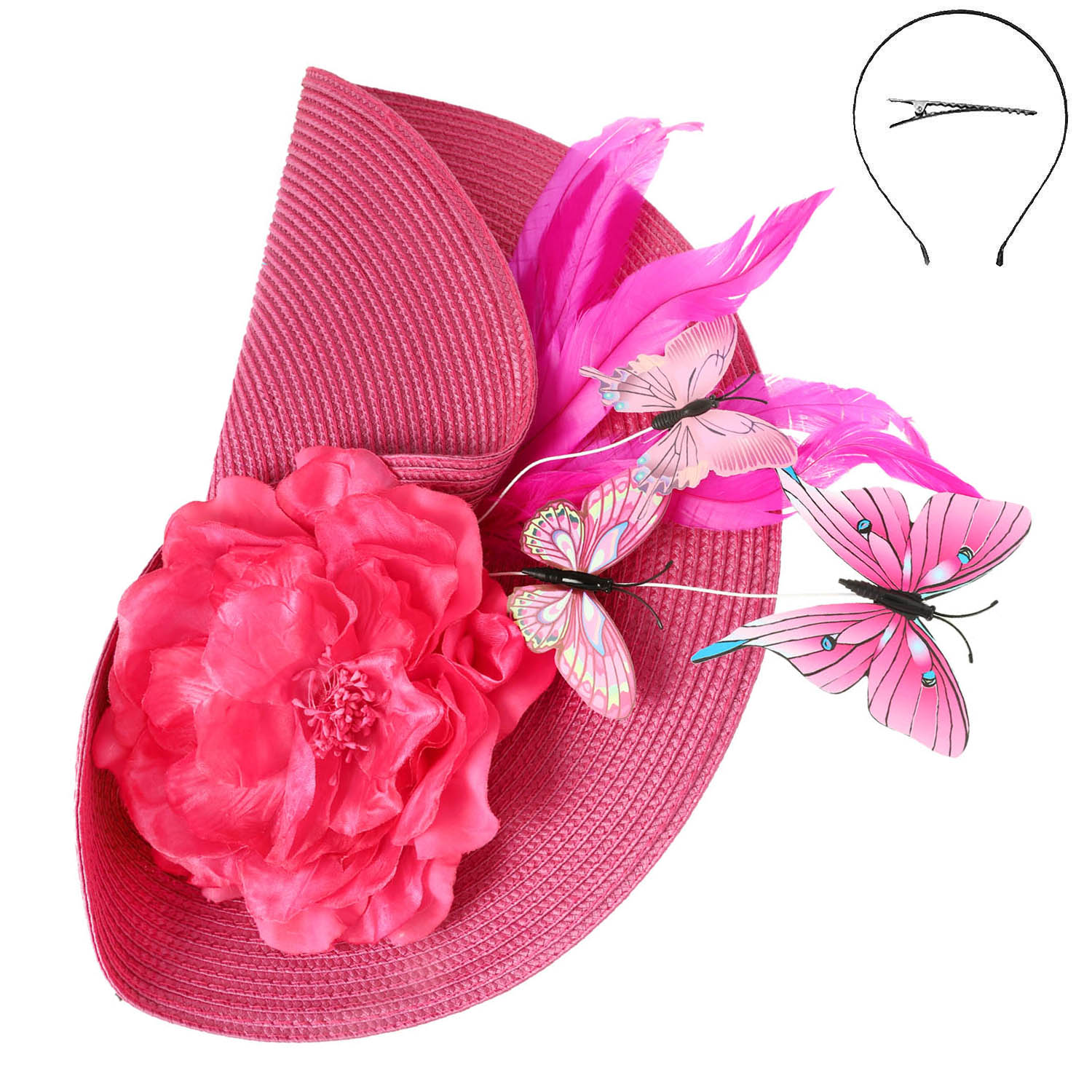 WIDE-UP BRIM FEATHERED PEONY FASCINATOR WITH HAIR CLIP AND HEADBAND