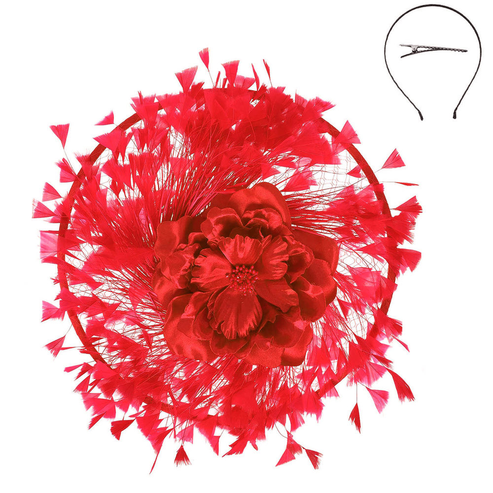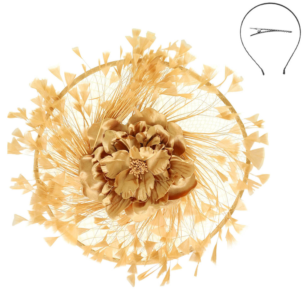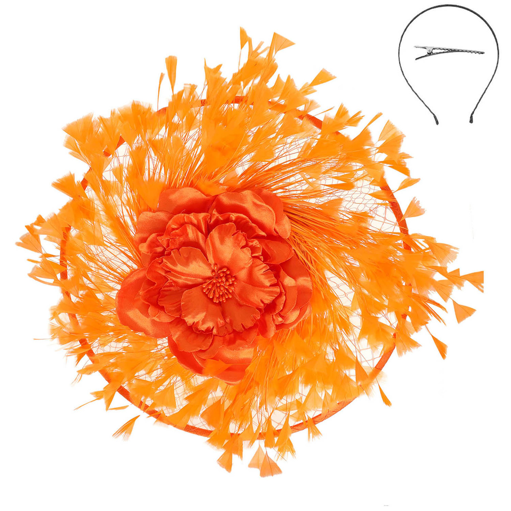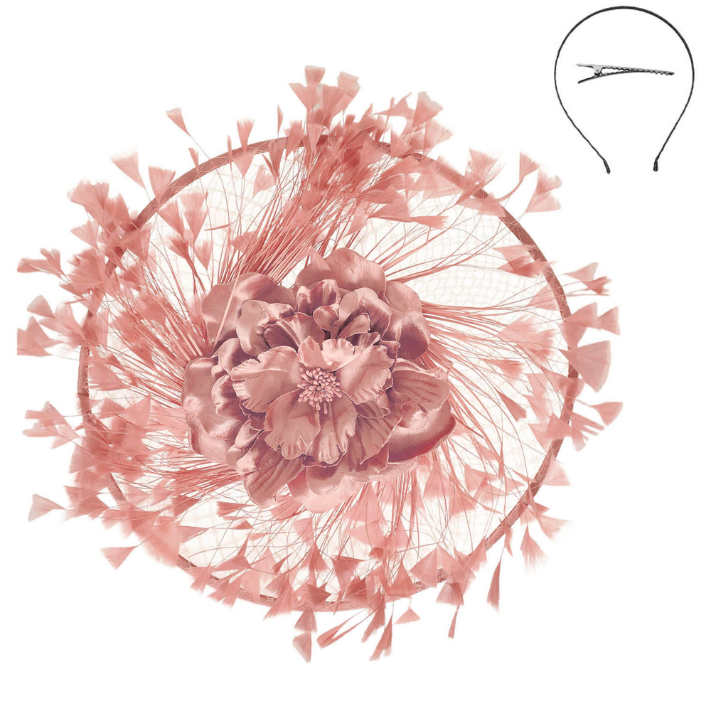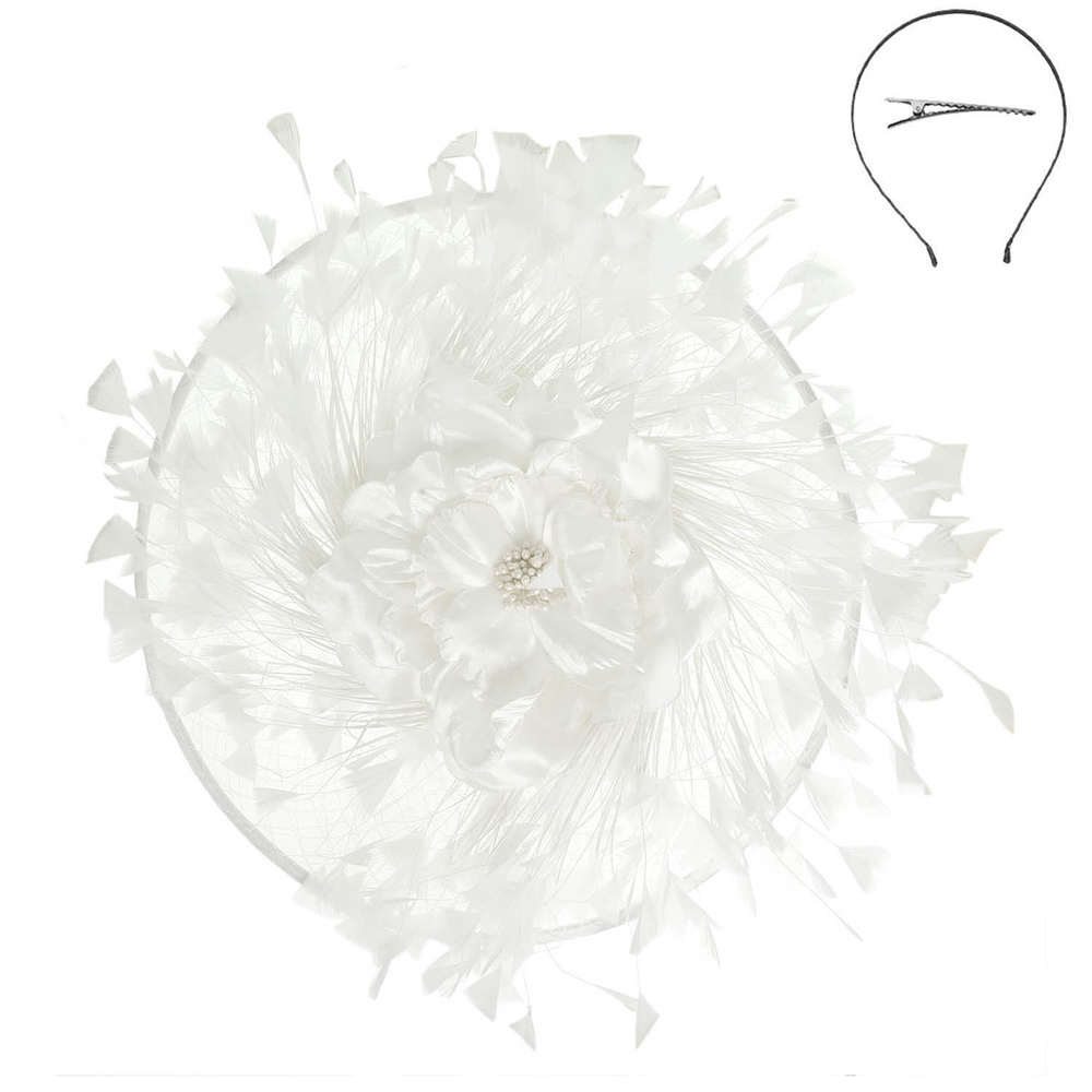 FLORAL FEATHER SPRAY FASCINATOR WITH HEADBAND AND HAIR CLIP