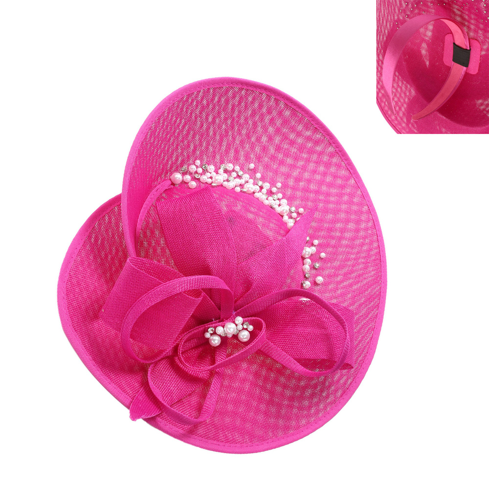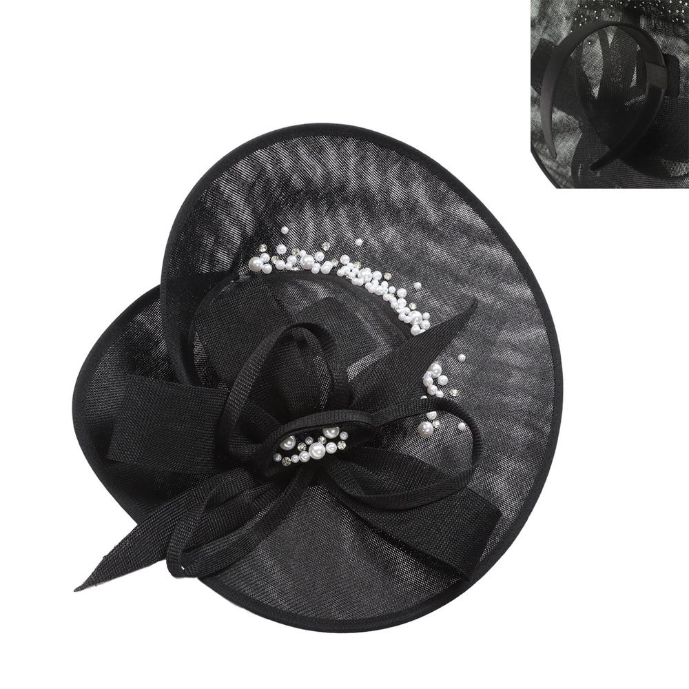SAUCER FASCINATOR WITH LOOPED BOW AND PEARL RHINESTONE SPRAY