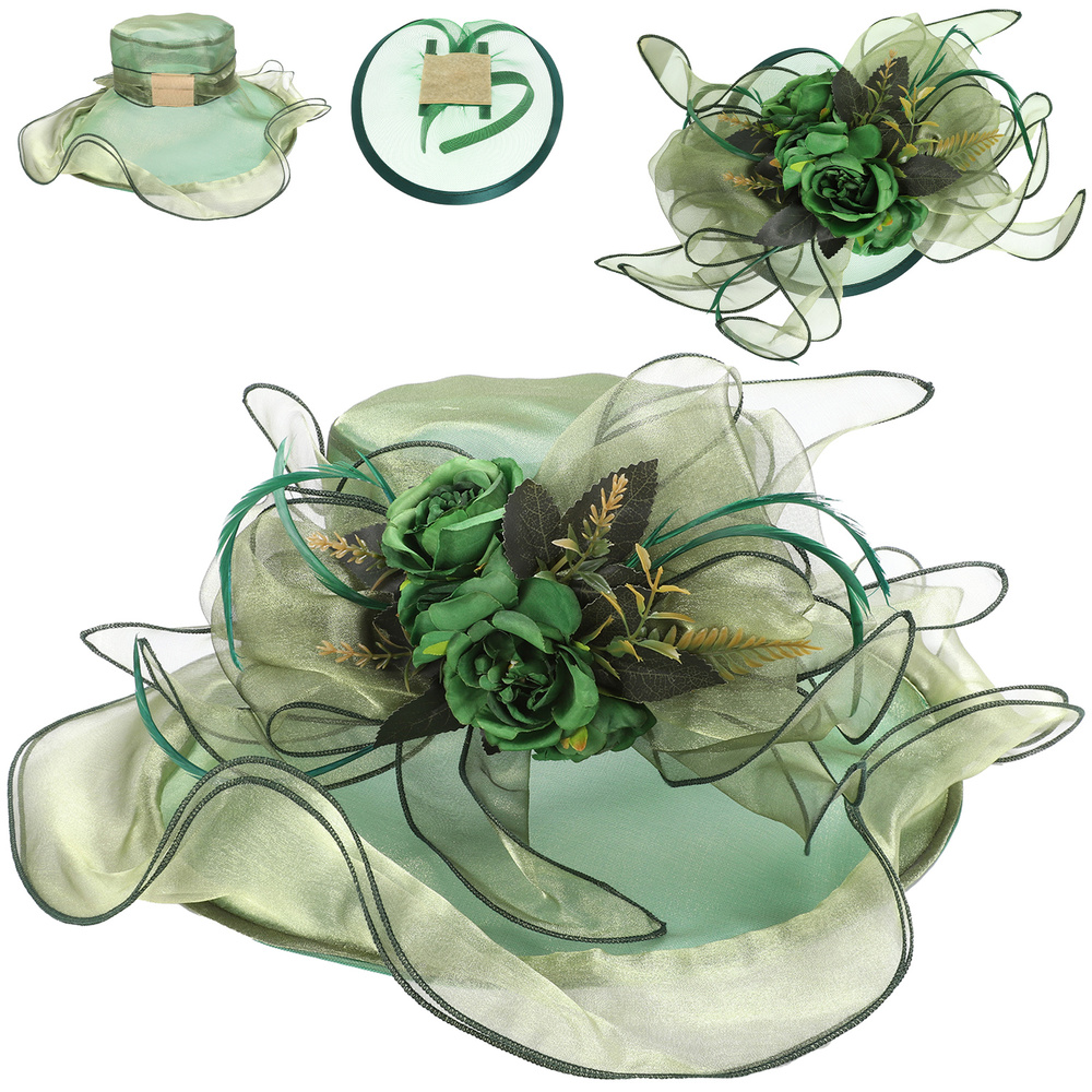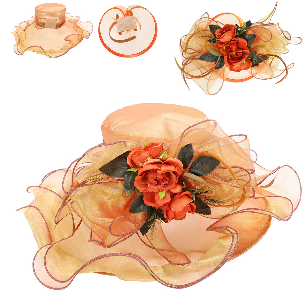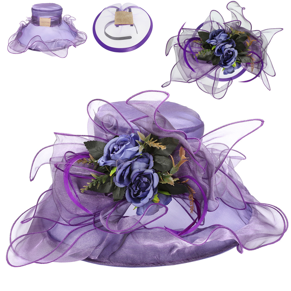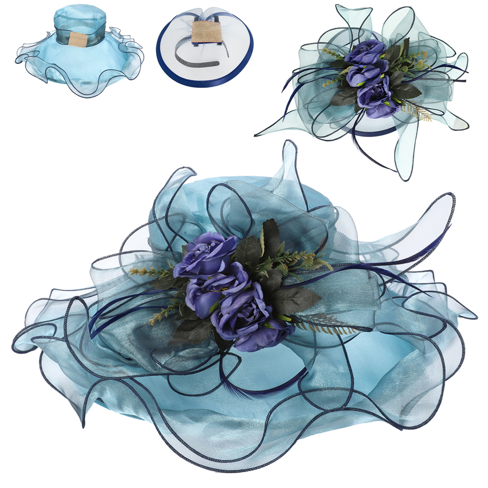 ORGANZA HAT WITH DETACHABLE FASTENED FLORAL FASCINATOR WITH CLIP AND SEPARATE HEADBAND