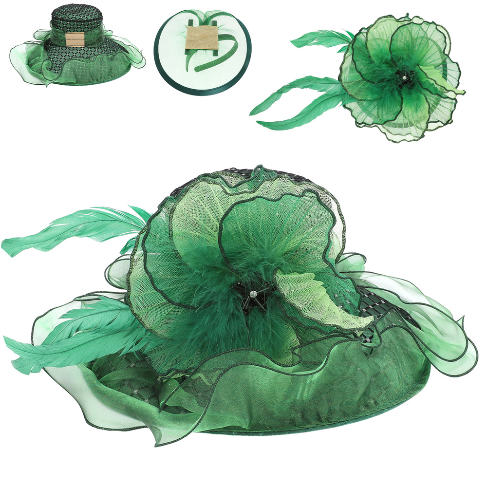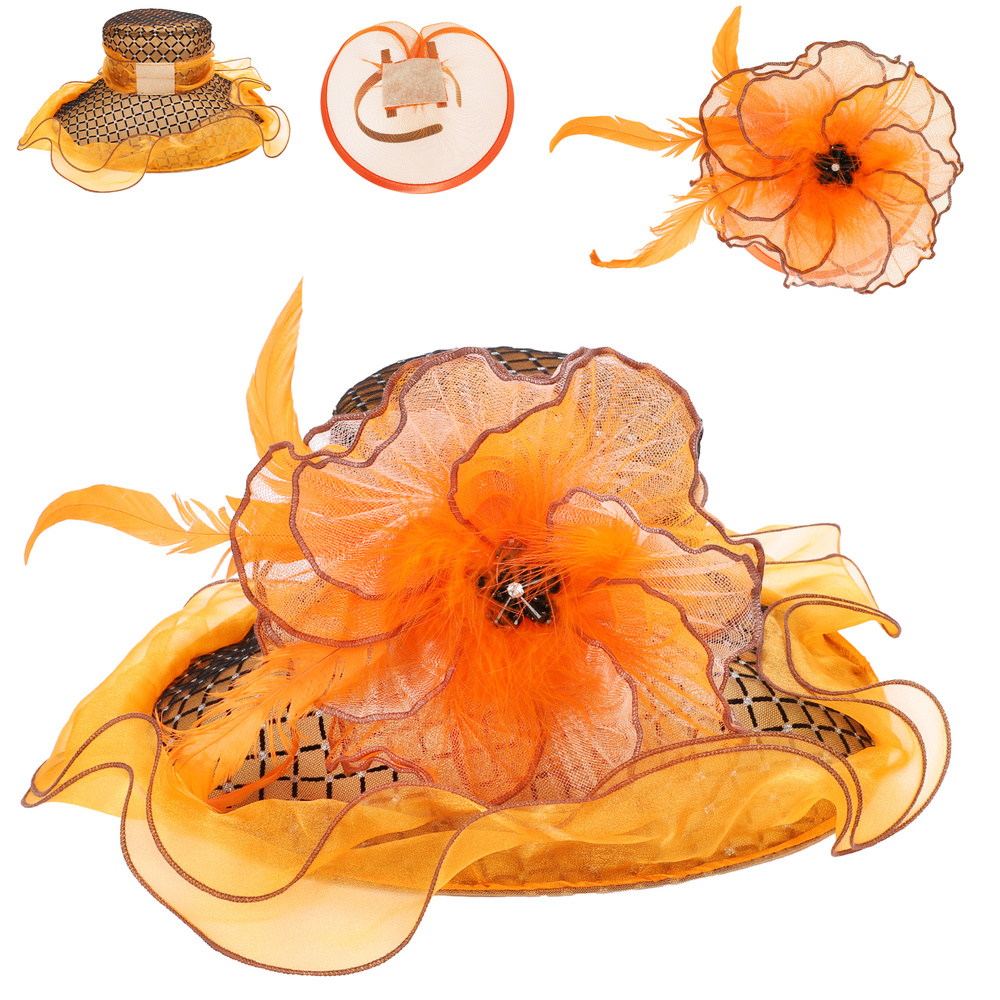 ORGANZA HAT WITH DETACHABLE FASTENED FLORAL FASCINATOR WITH CLIP AND SEPARATE HEADBAND