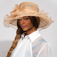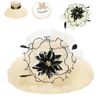 • FLORAL SATIN TRIM WIDE BRIM ORGANZA HAT