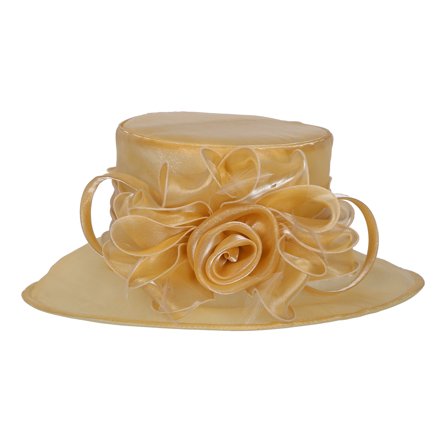 Medium brim organza hat w/ rose cluster center