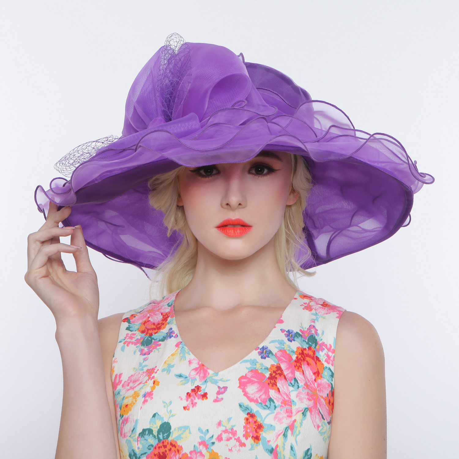 Large Brim Organza Hat W/mesh Bow